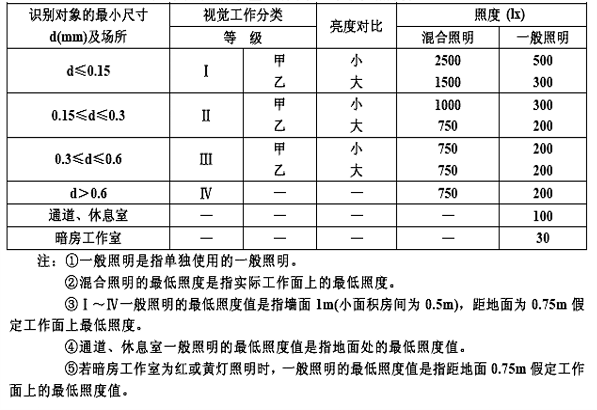 3、無采光窗潔凈區工作面上的照度值,不應低于下表規定的數值。