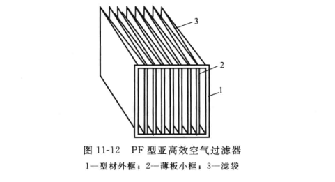 5μm范圍內的塵粒。常用的PF型亞高效空氣過濾器的結構如圖11-12所示。