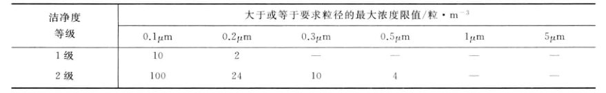 空氣的潔凈度可用單位體積空氣中所含塵埃的大小和數量來表示根據空氣中所含塵埃的大小和數量,《潔凈廠房設計規(guī)范》將空氣劃分為9個潔凈等級。如圖1所示。