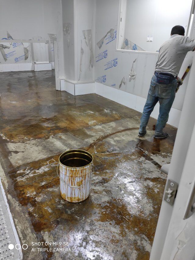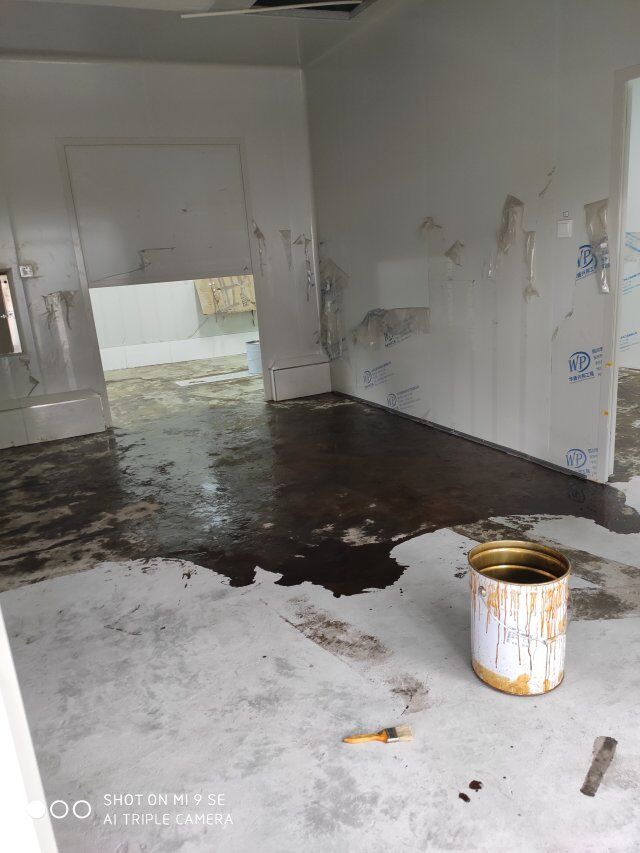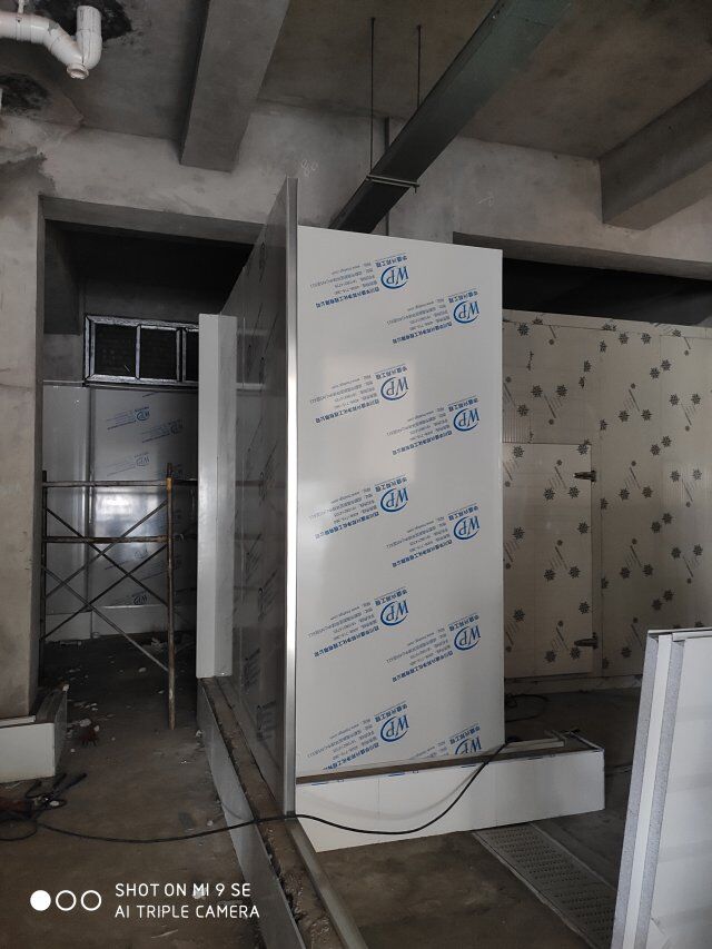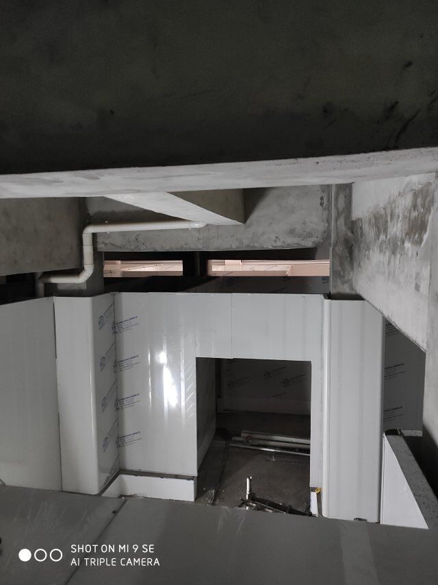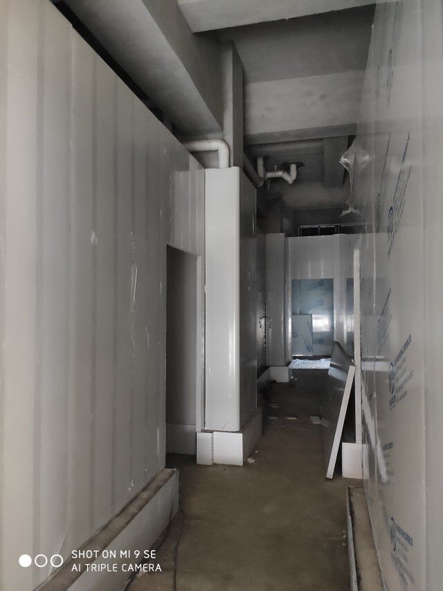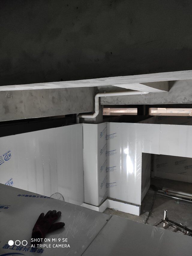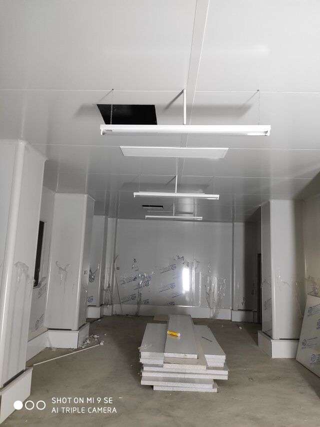 四川王臻王牛肉有限公司廠房裝修現(xiàn)場(chǎng),包柱子,現(xiàn)場(chǎng)吊頂板