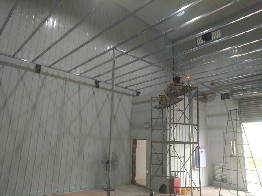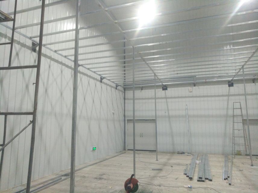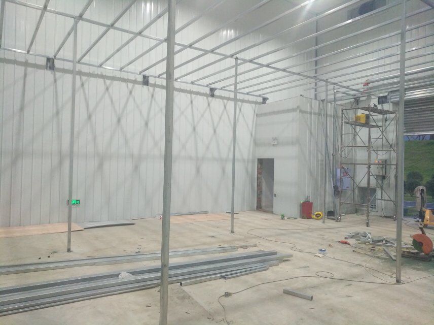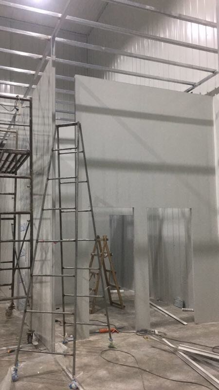 四川聚峰谷農業科技開發有限公司廠房裝修現場,隔斷立墻板