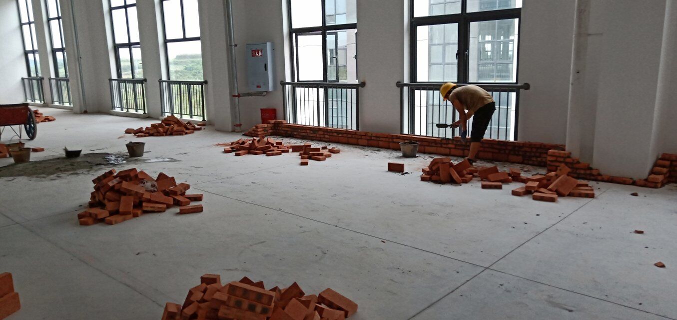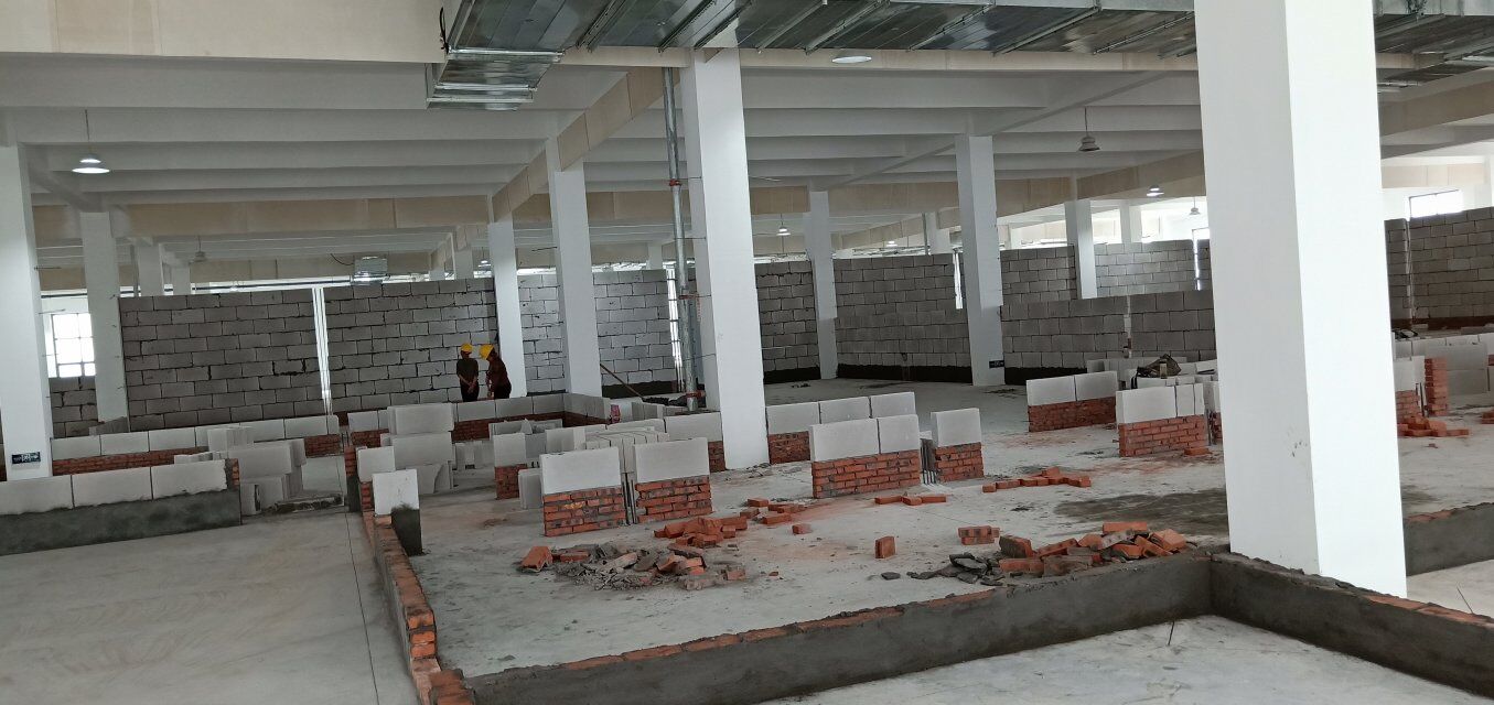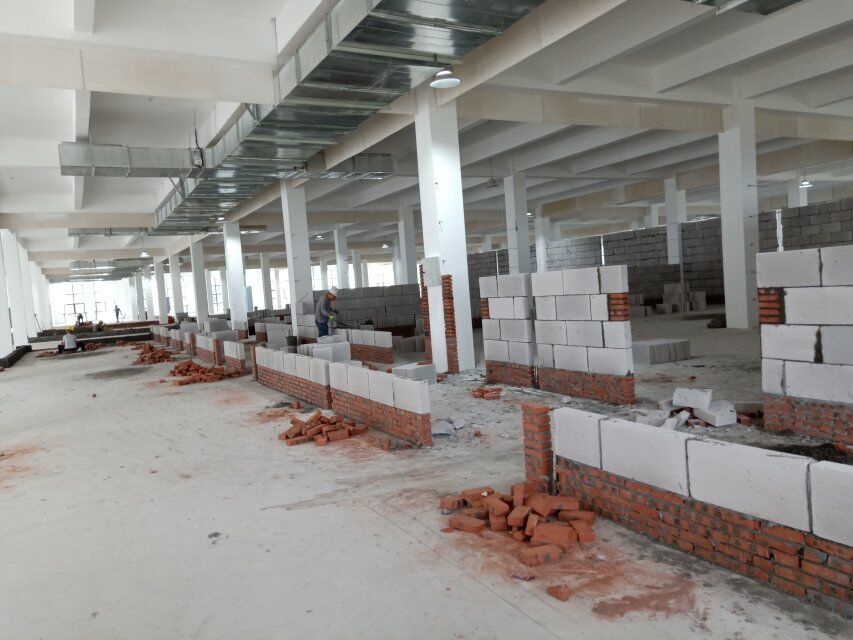 四川楊陳鮮米線食品有限公司廠房裝修現(xiàn)場,現(xiàn)場測量放線中