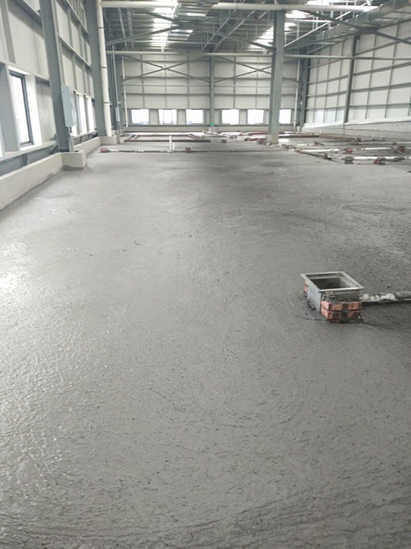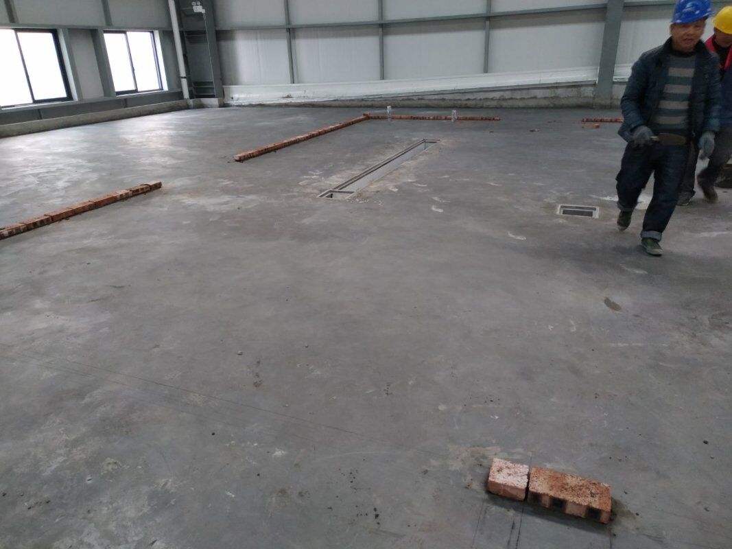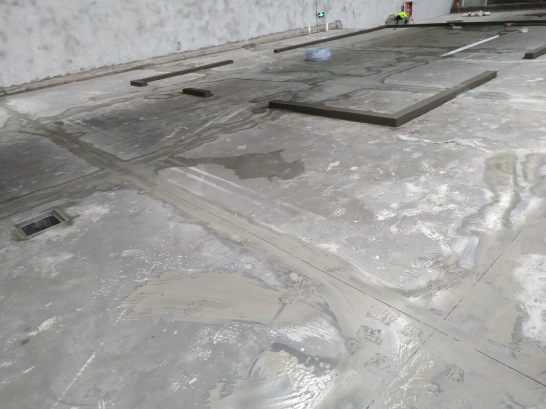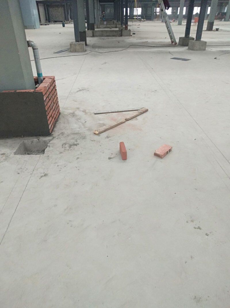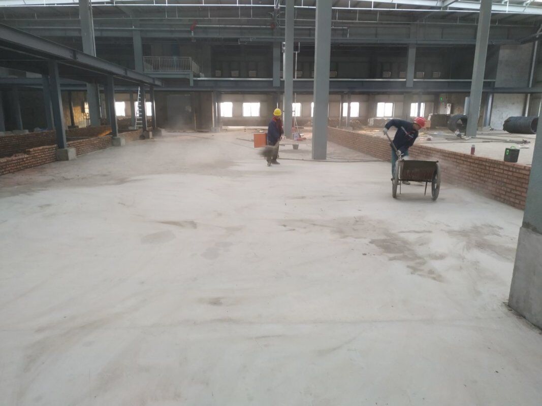 四川吉百興食品有限公司中央廚房施工現場,地坪灑水,放線