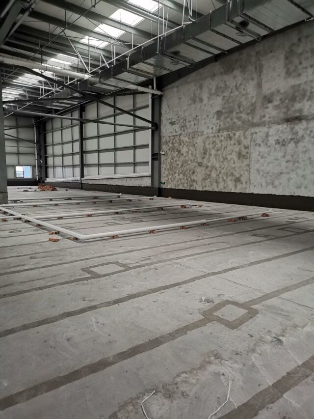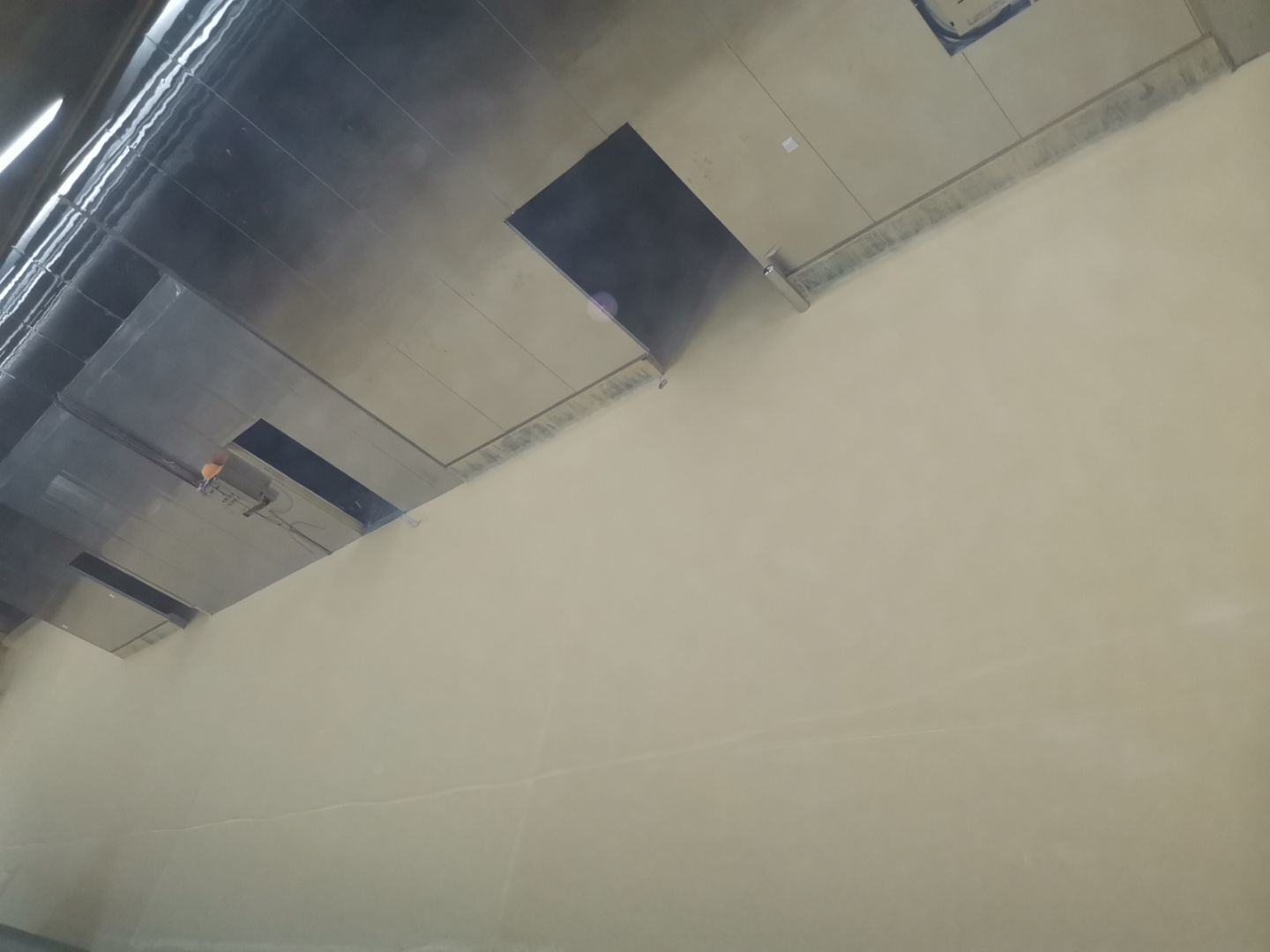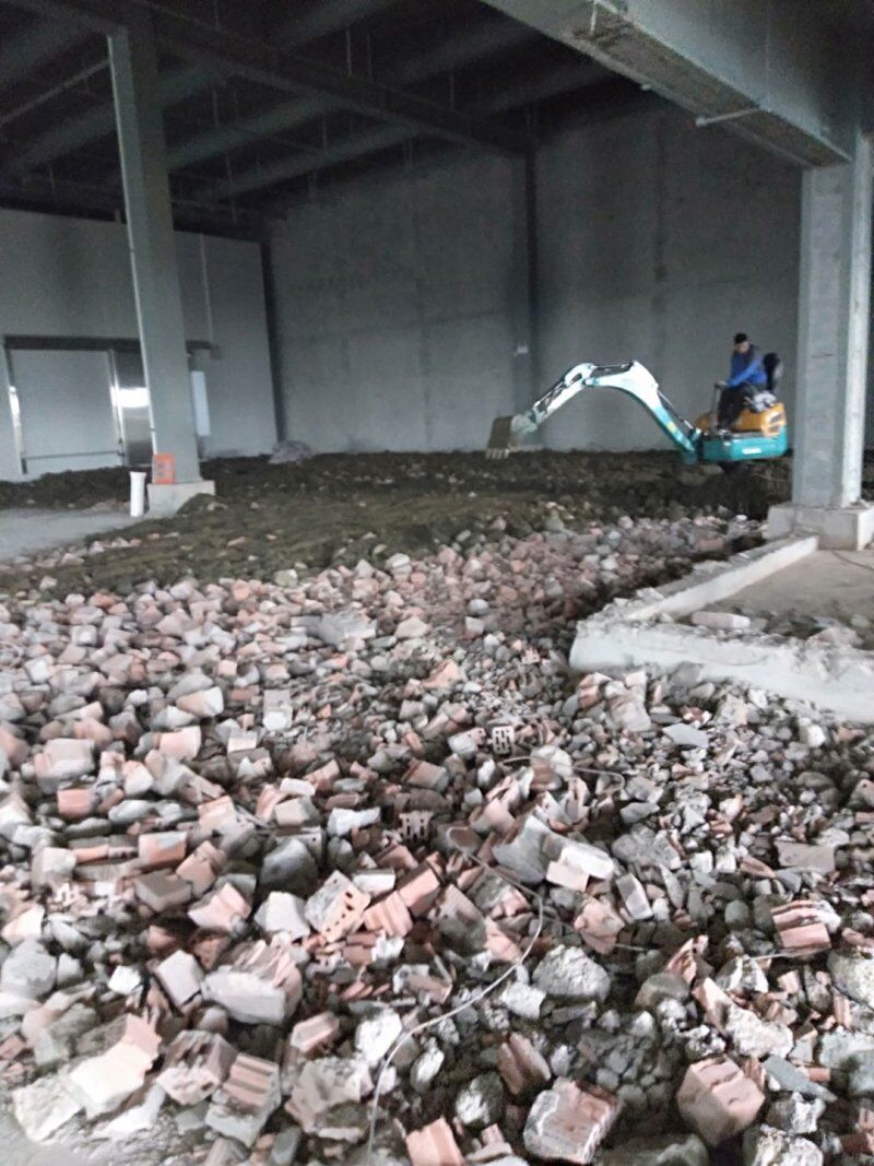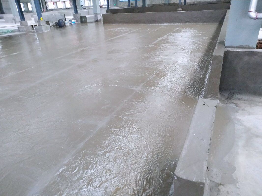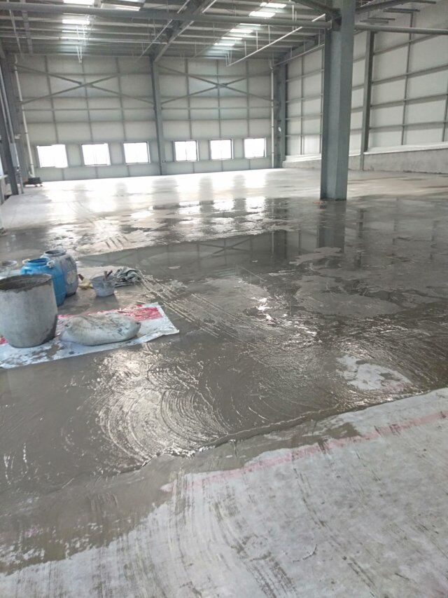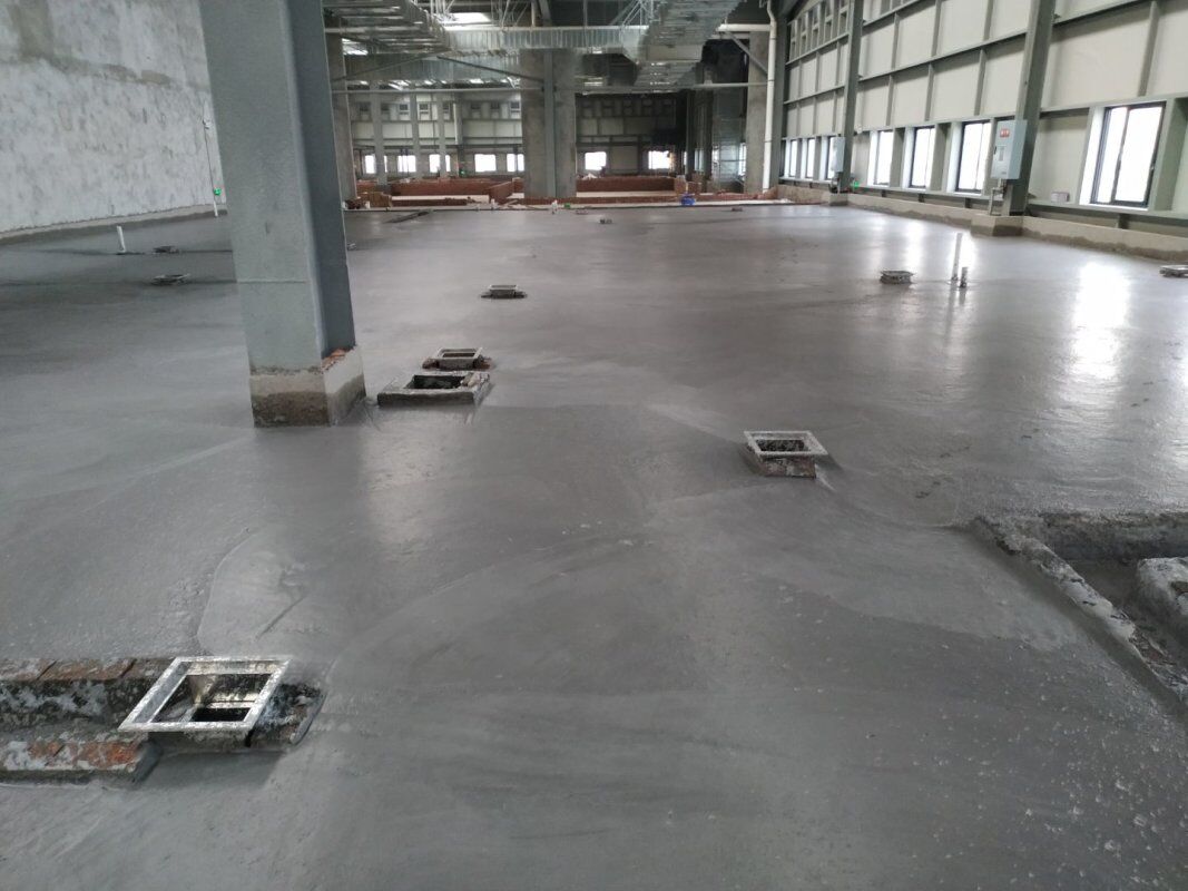 四川吉百興食品有限公司中央廚房施工現場,地坪灑水,放線