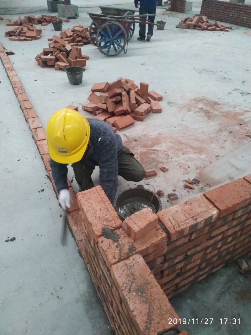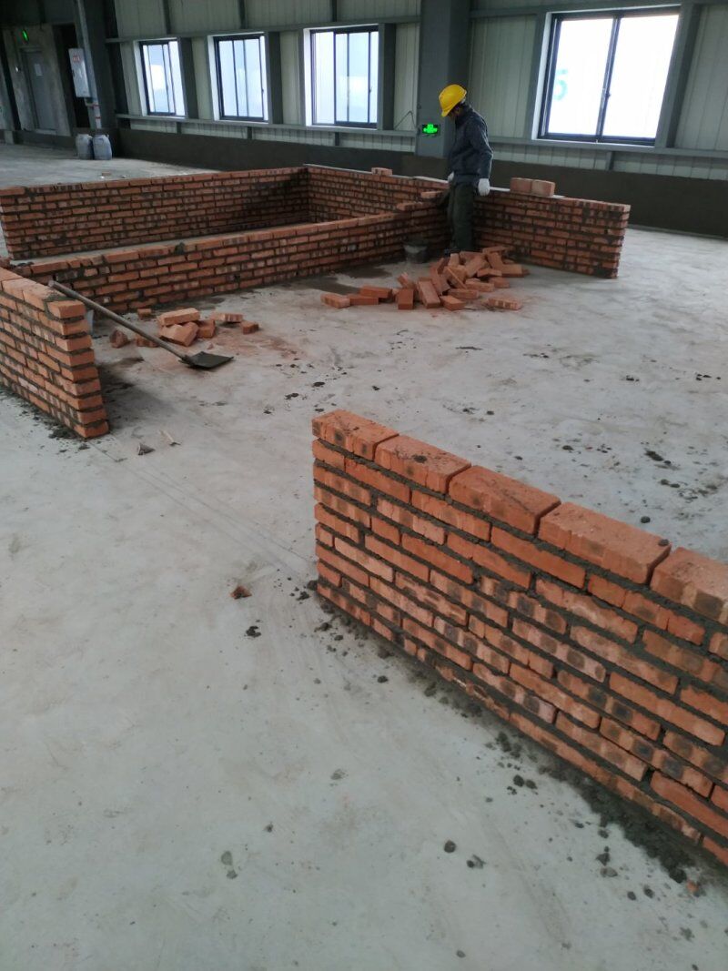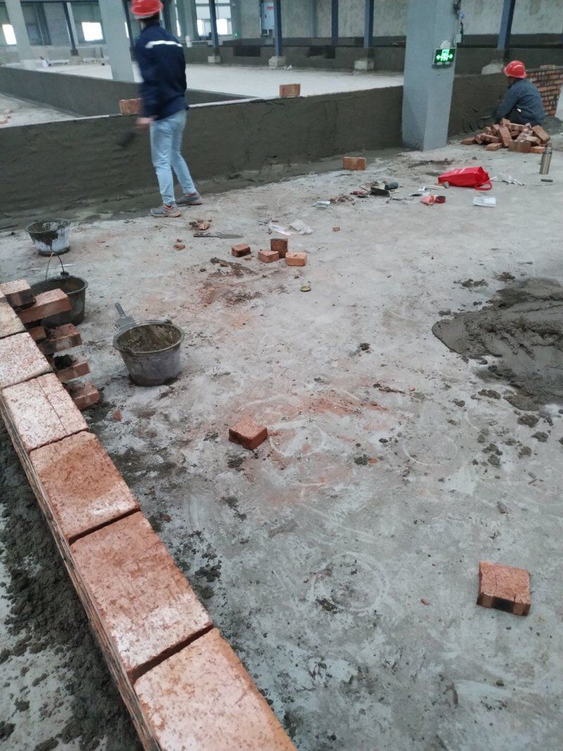 車間擋水墻砌磚施工,發泡混泥土開始施工