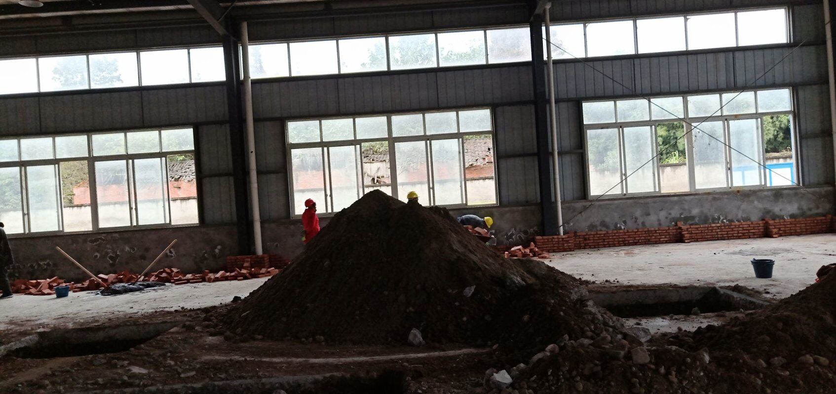 車間外邊排水管安裝,車間排水墻砌磚