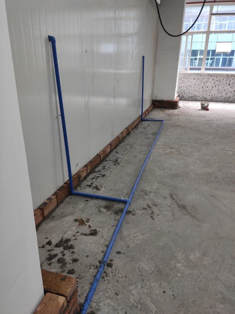 1.排水管安裝完成80% 2.凍庫擋水墻完成
