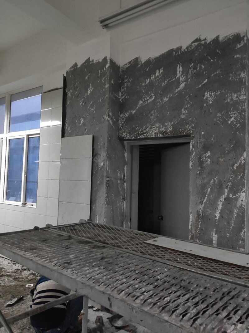 1.墻面貼磚完成 2.擋水墻貼磚完成 3.地面貼磚施工