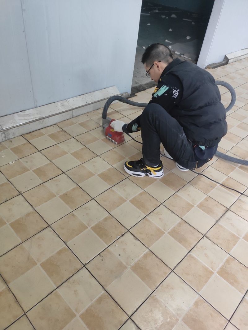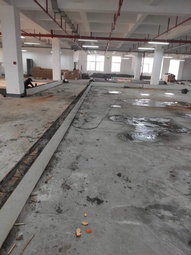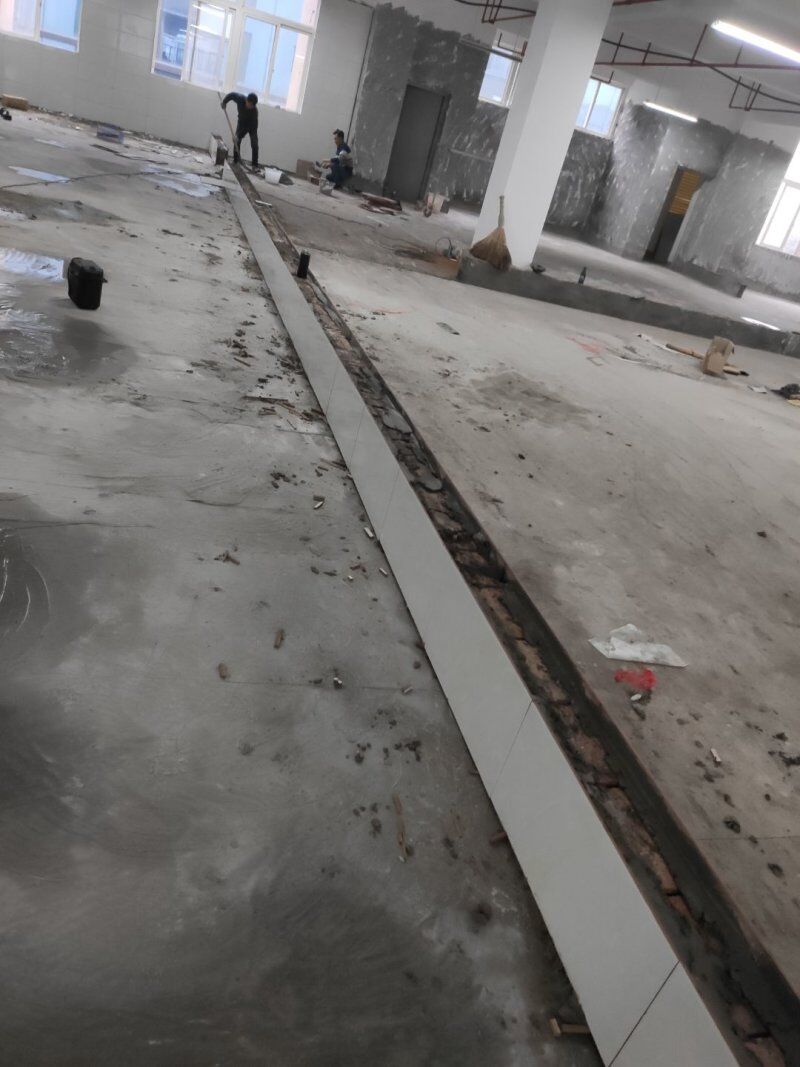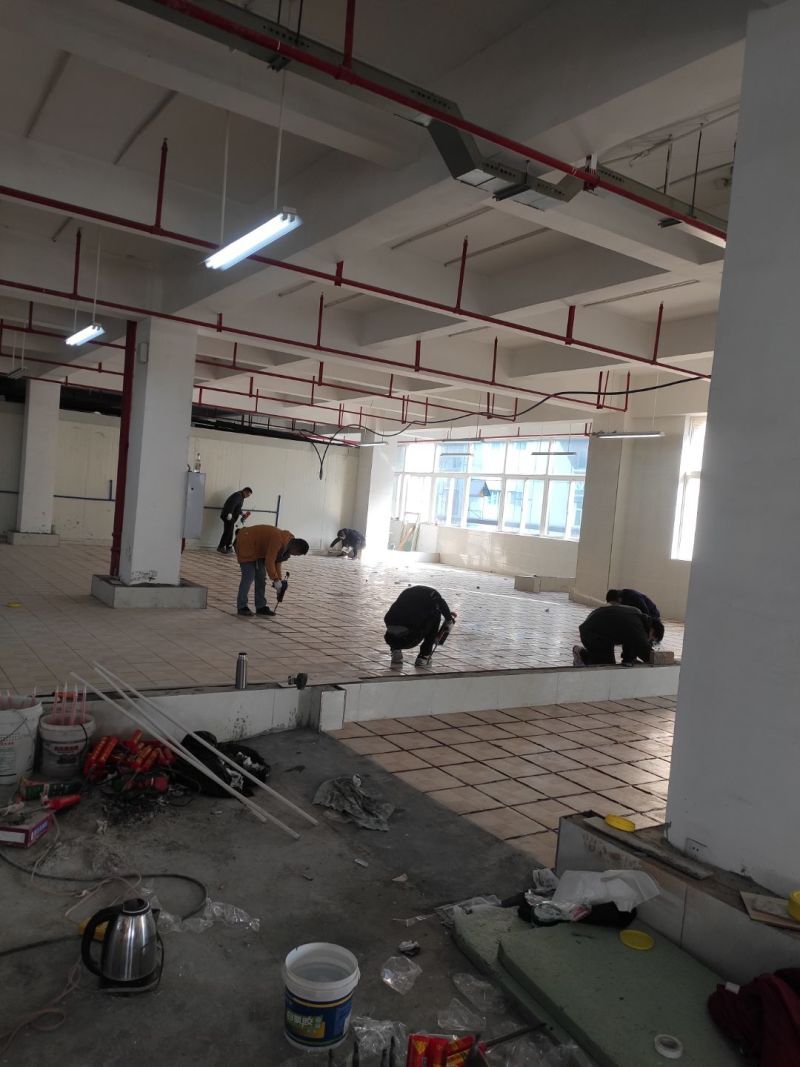 地磚鋪設(shè)完成一半,清洗間墻磚開始施工,車間衛(wèi)生打掃完成