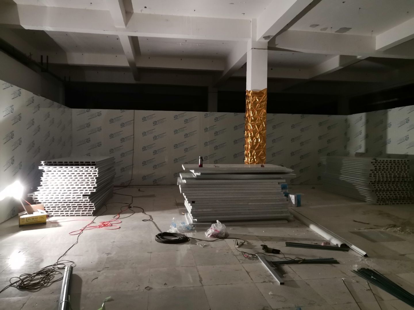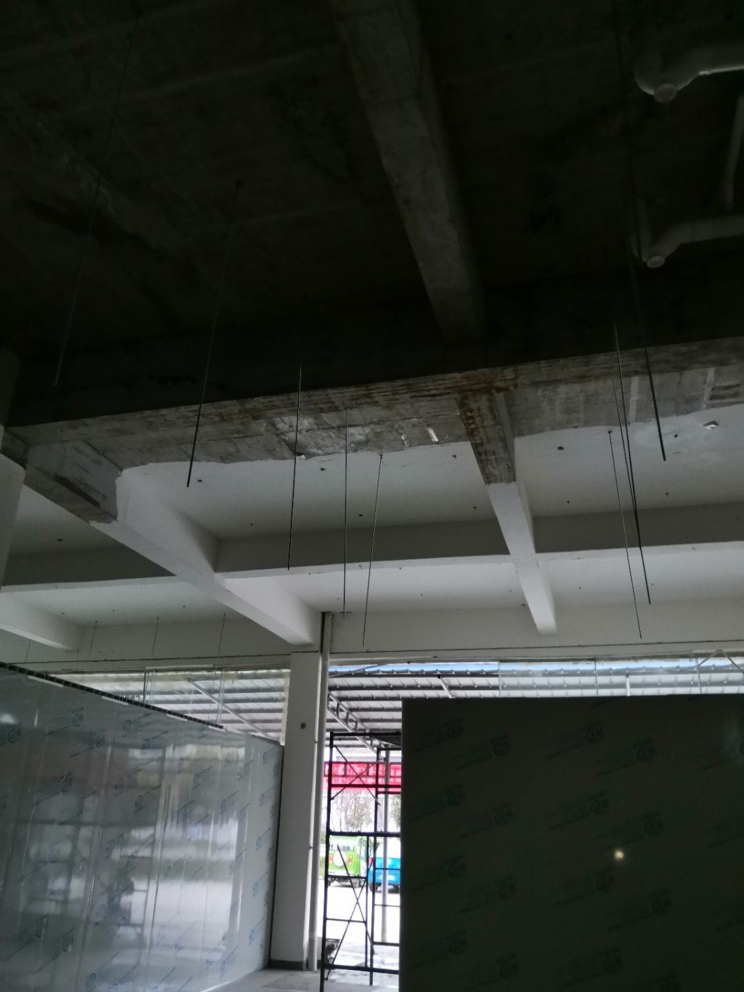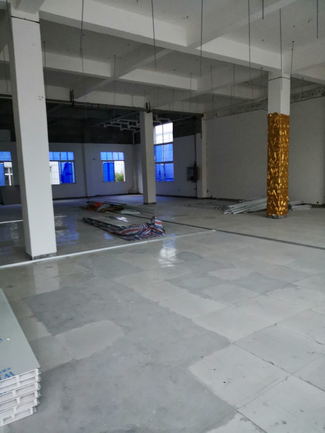 1,吊筋安裝全部完成, 2,門制作及安裝, 3,現場6s清理, 4,剩余全部彩鋼材料進場,風管及水電材料預計明日進場。