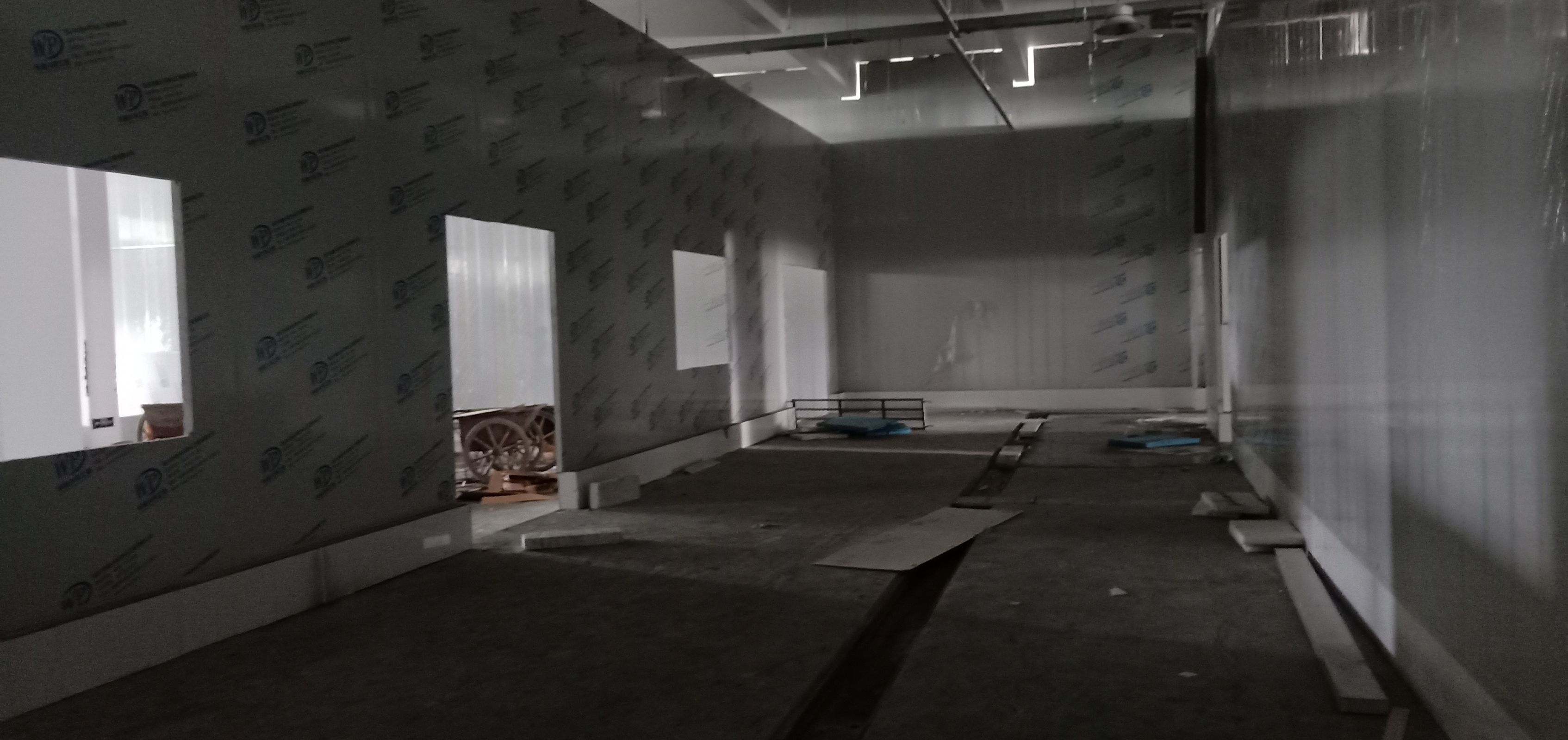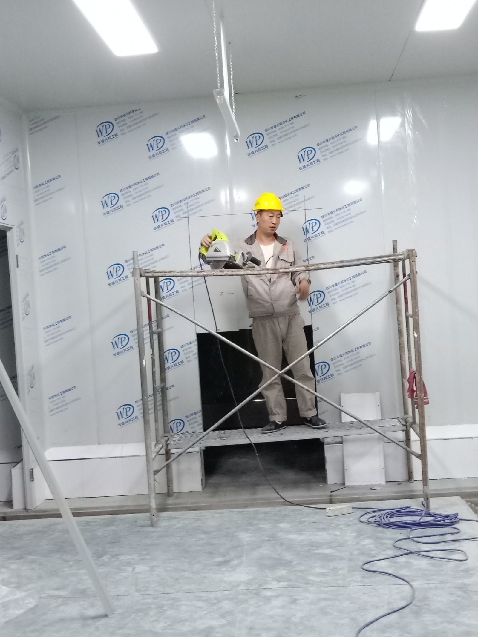 1.三防板吊頂材料到場。 2.彩鋼板吊頂材料到場,吊上樓。 3.彩鋼板吊頂完成百分之五。 4.線盒開孔完成百分之六十。 5.墻磚鋪貼完成百分之八五。 6.污水池砌磚完成百分之六十。