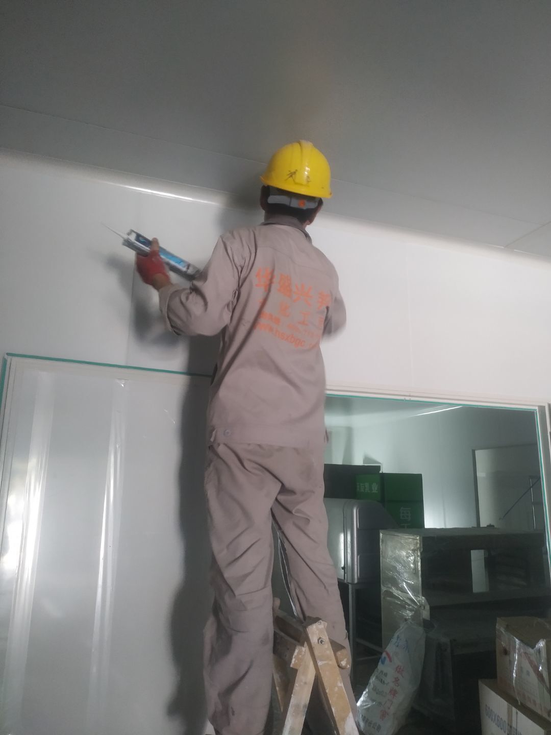 車間墻板,頂板施工,圓弧打膠施工