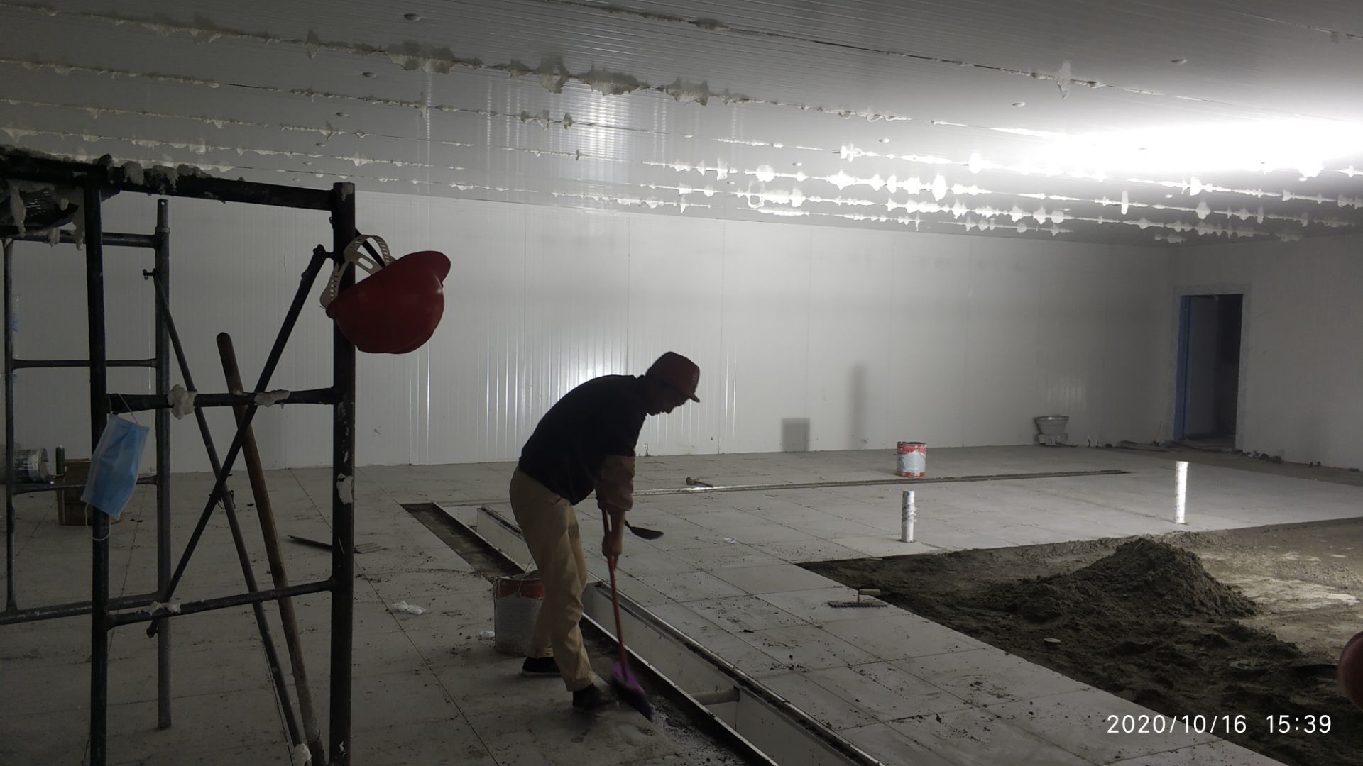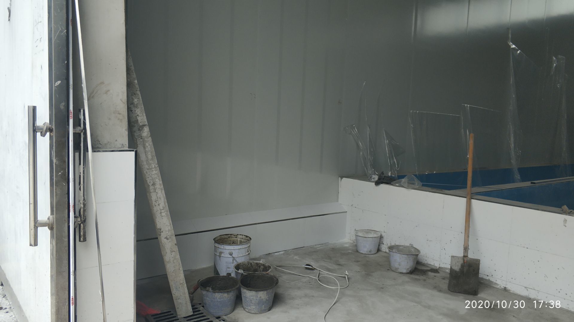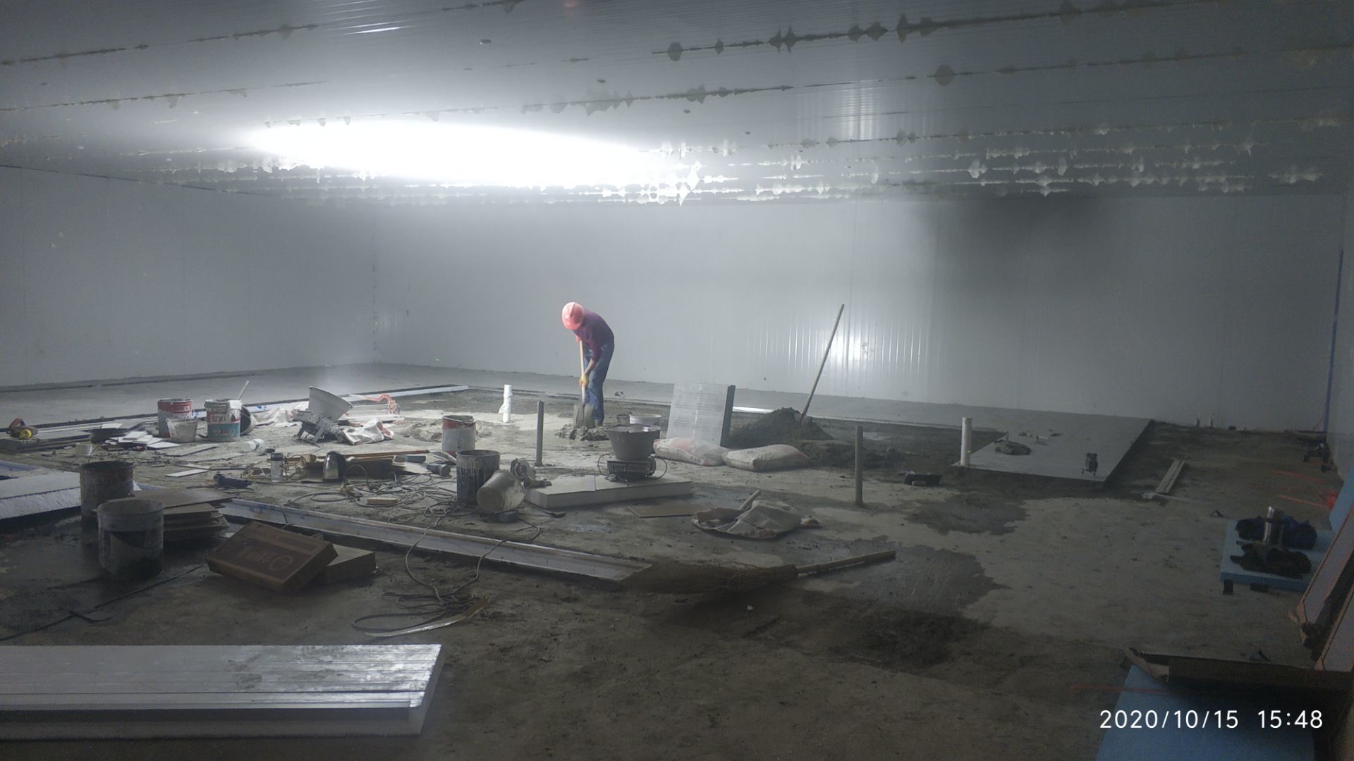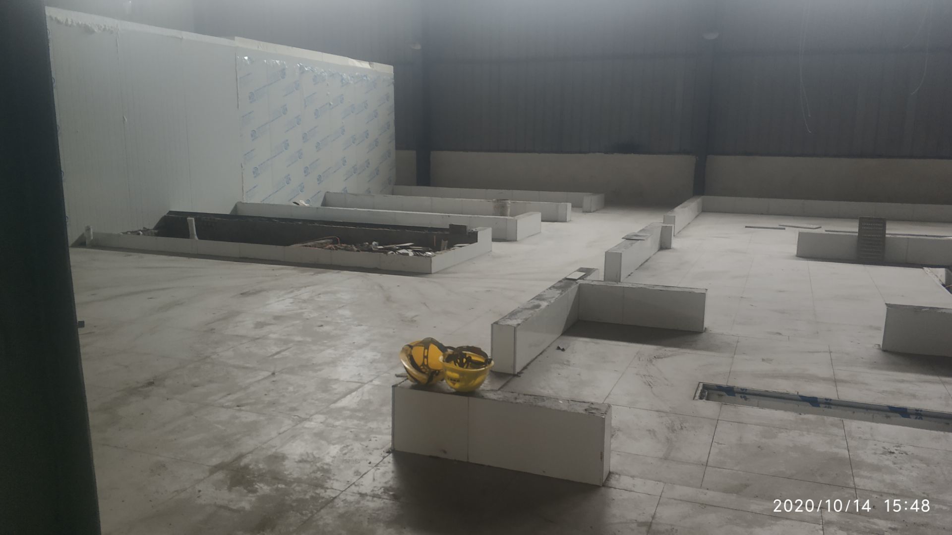 1.地面瓷磚鋪貼完成百分之八十。 2.凍庫(kù)墻板安裝施工完成百分之五。