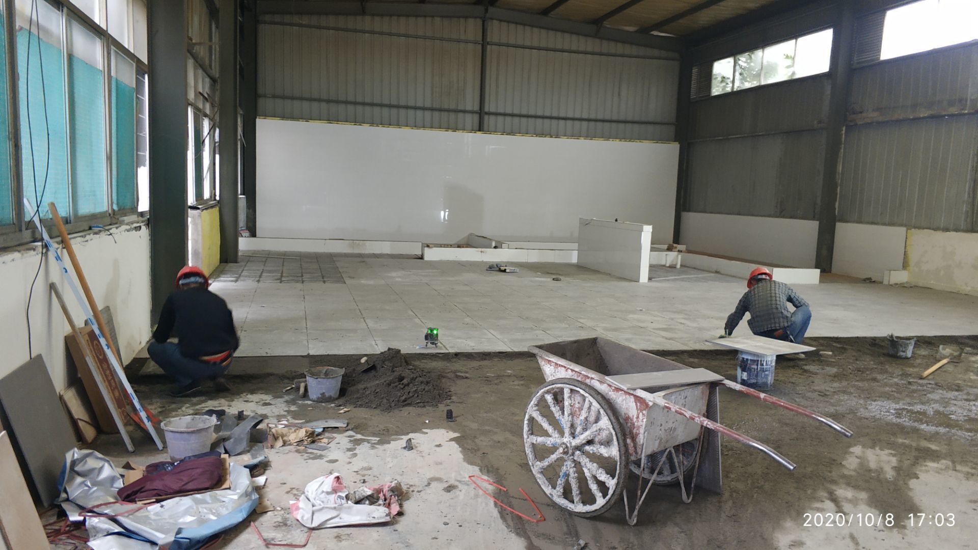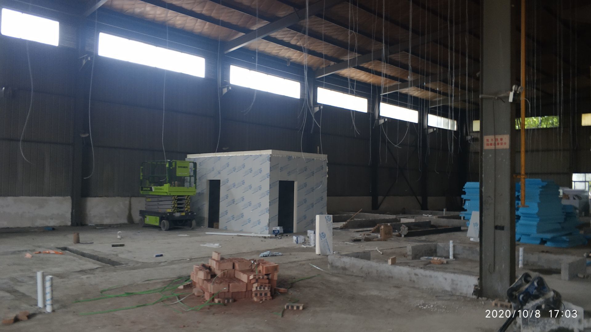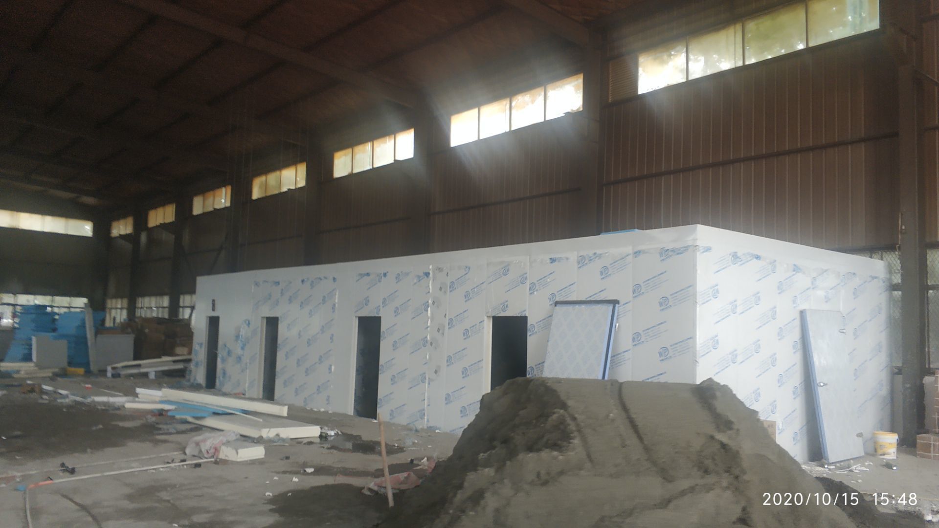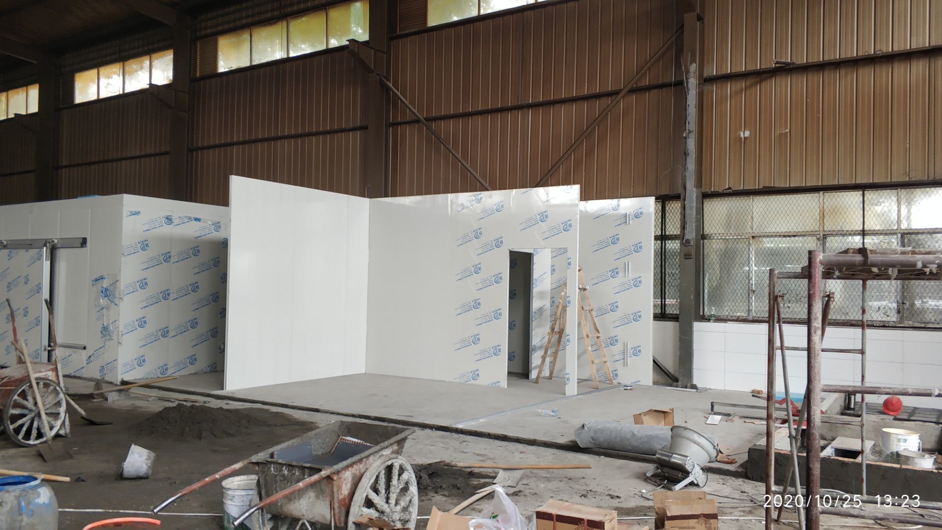 1.地面瓷磚鋪貼完成百分之八十。 2.凍庫(kù)墻板安裝施工完成百分之五。