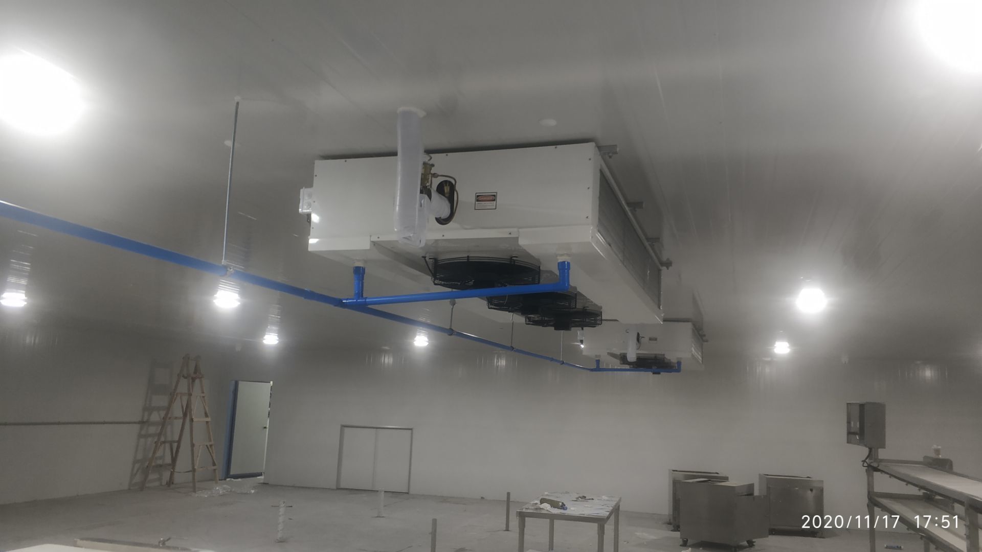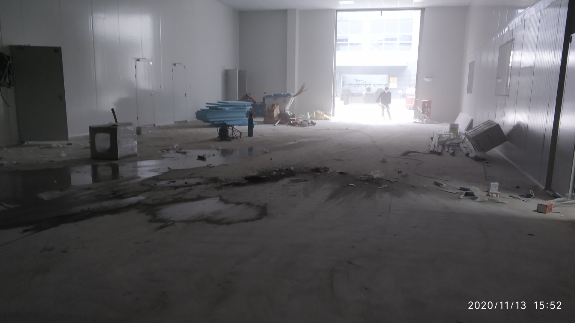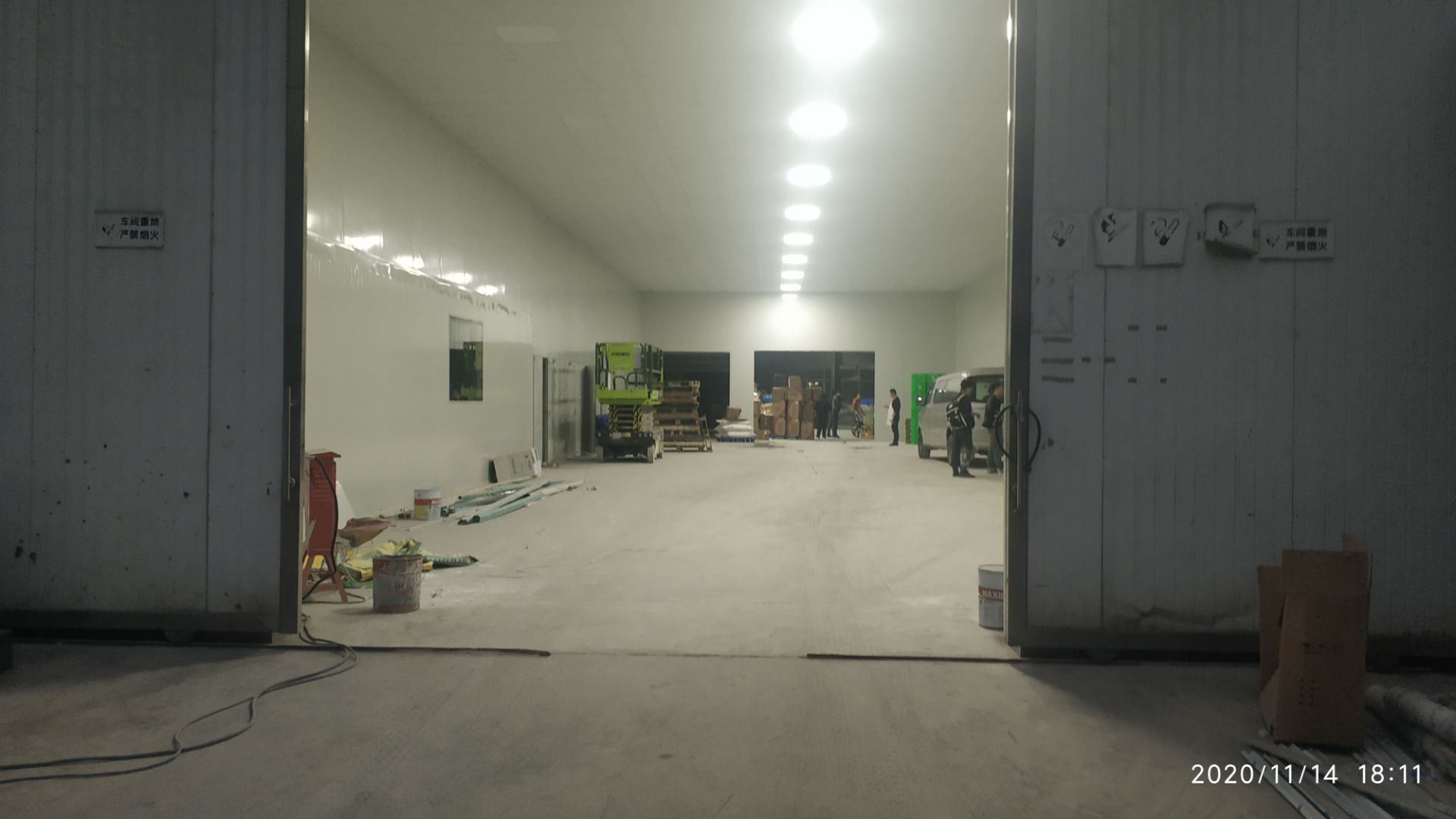 1.地面打磨完成分揀區(qū)域和后勤庫(kù)房。2.彩鋼組收邊收口,安裝門完成百分之八十。3.照明插座布線安裝完成百分之八十五。 4.凍庫(kù)內(nèi)機(jī)組安裝完成。 5.卷簾門安裝完成。