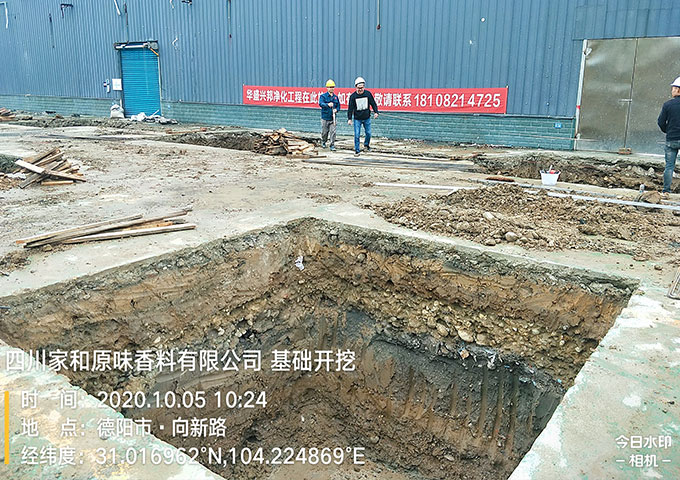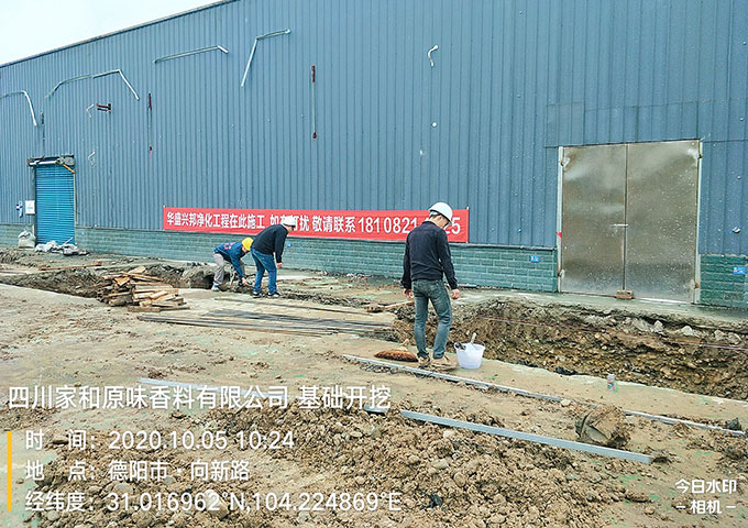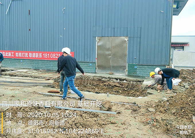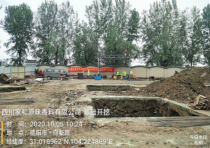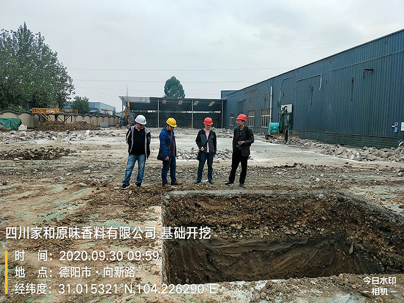 四川家和原味香料有限公司土建廠房施工現(xiàn)場,今日工作,基礎(chǔ)開挖