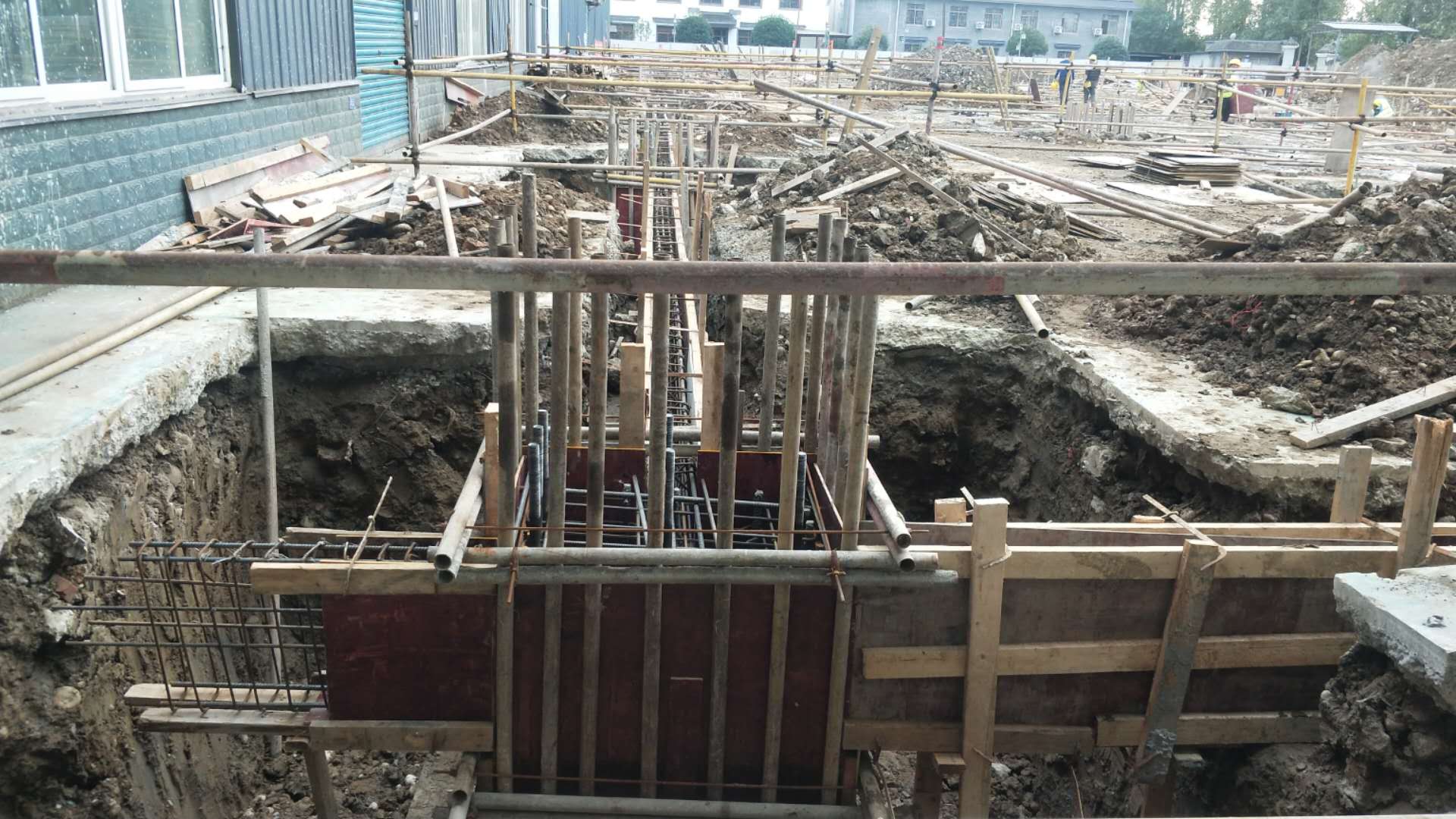 1.次鋼構(gòu)材料進(jìn)場; 2.地梁短柱模板安裝完成90%