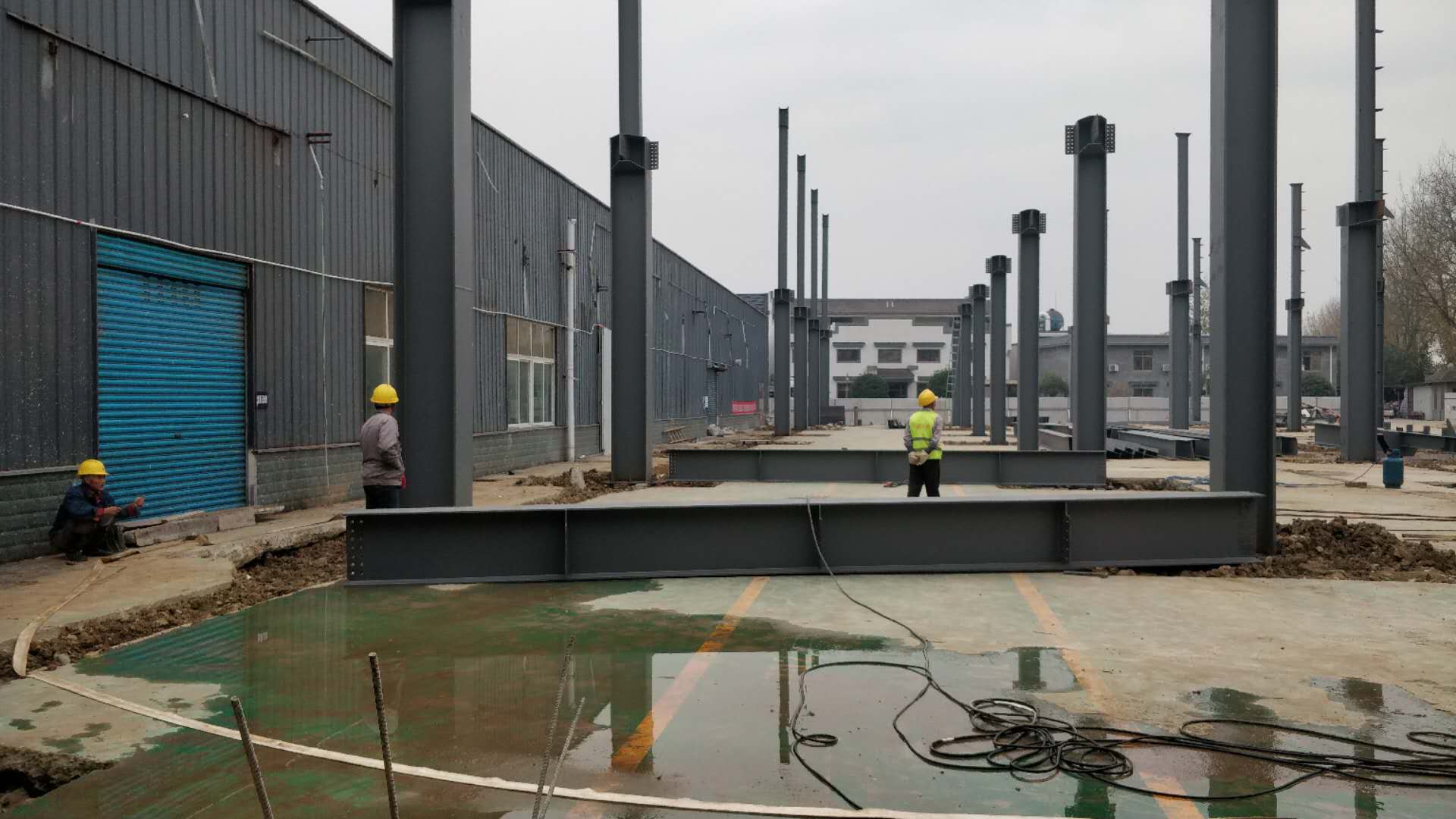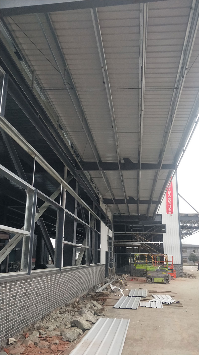 1.墻檁條安裝完成90%;2.落水管預(yù)埋完成40%;3.覆蓋地坪養(yǎng)護(hù)完成100%;4.屋面檁條安裝完成5%