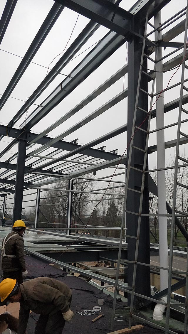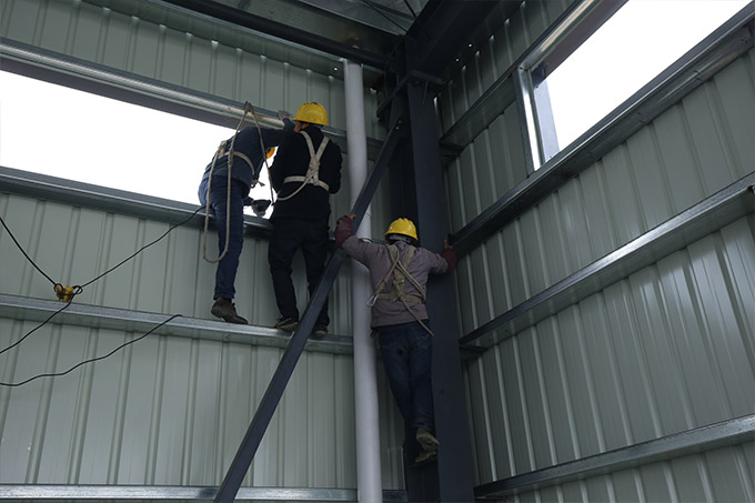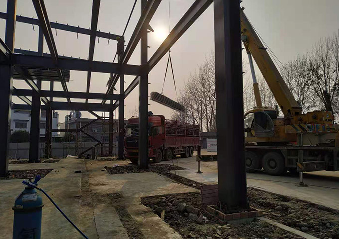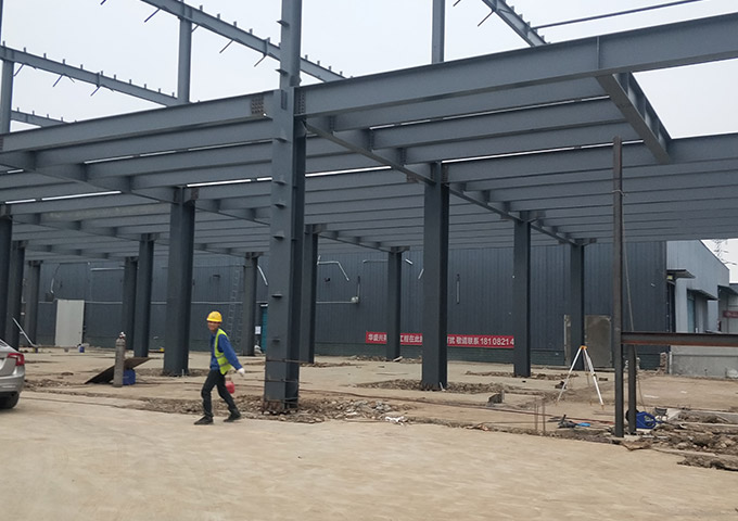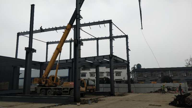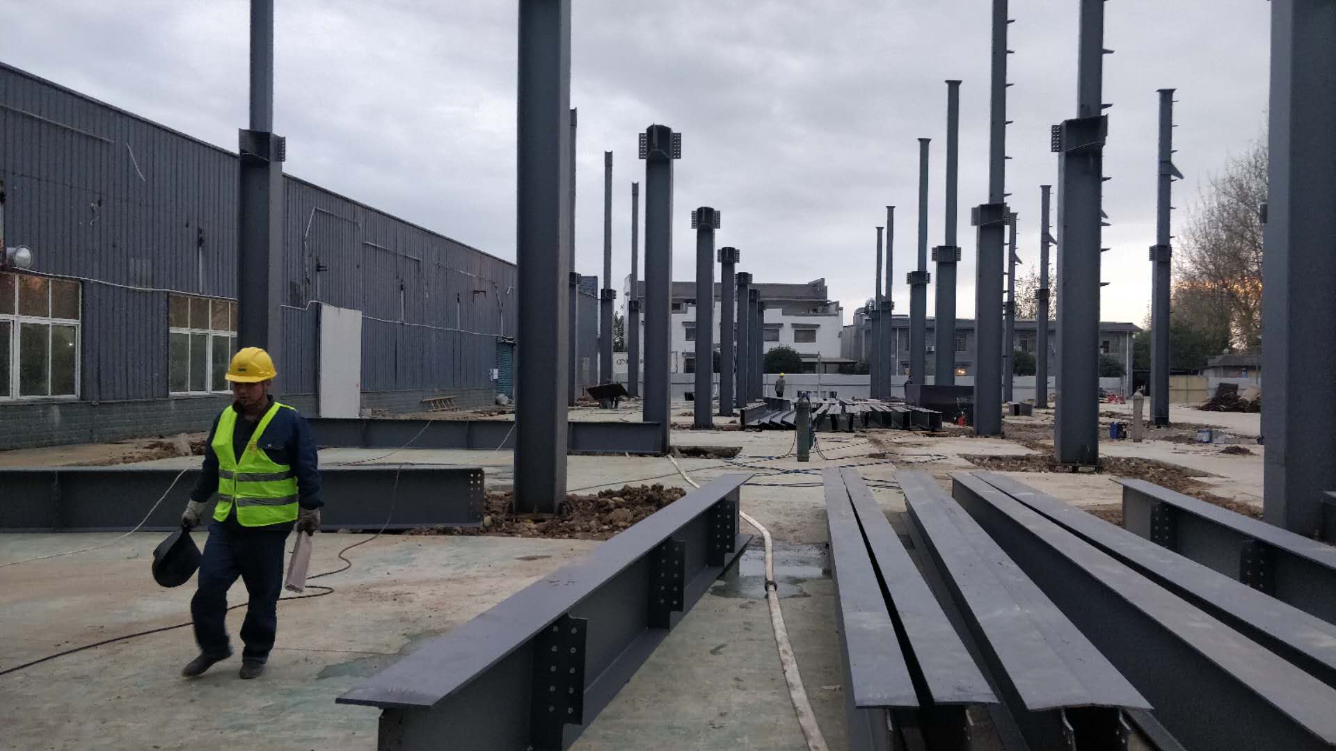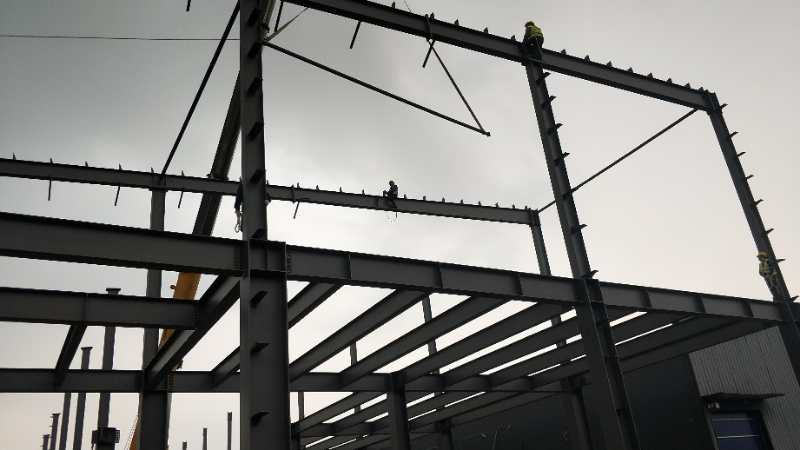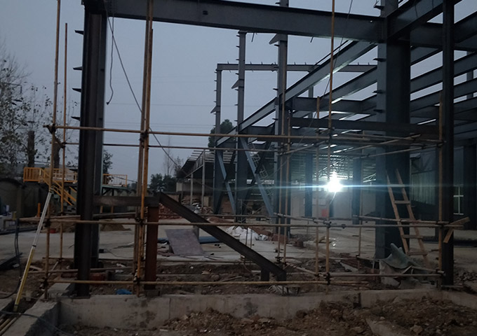 鋼構(gòu)主體結(jié)構(gòu)安裝完成。接下來整體校正,螺栓終擰,節(jié)點(diǎn)焊接,油漆工作。