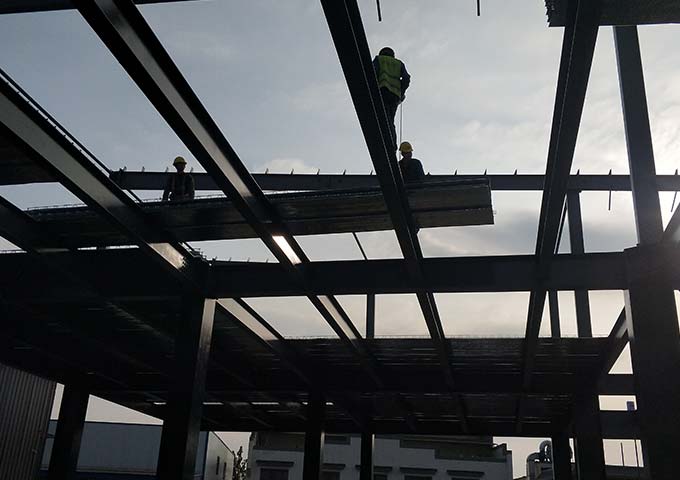 1.樓承板安裝完成85%;3.設(shè)備基礎(chǔ)完成60%;3.鋼樓梯完成85%