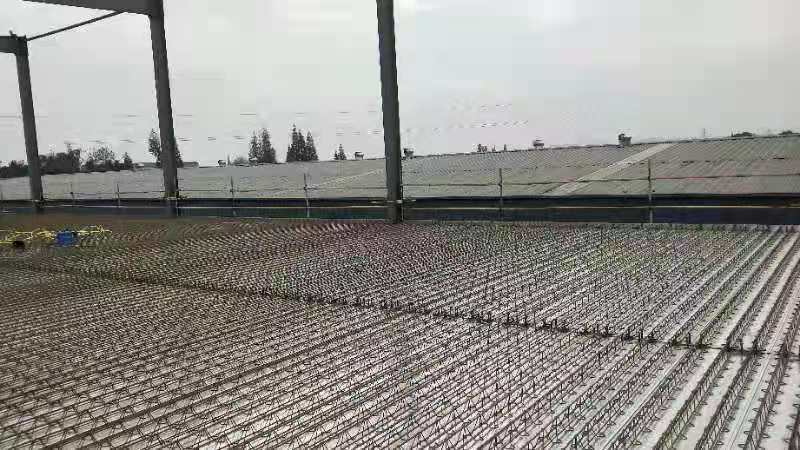 1.屋架刷漆及螺栓終擰完成100%;2.樓板鋼筋綁扎完成30%;3.次鋼構(gòu)安裝完成60%