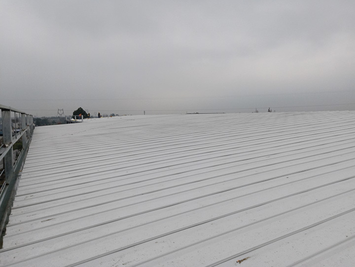 1.設(shè)備基礎(chǔ)完成100%;2.落水管預(yù)埋完成100%;3.屋面夾層完成30%;4.屋面檁條安裝完成100%;5.地坪鋼筋安裝完成100%;6.低洼處鋪石子完成