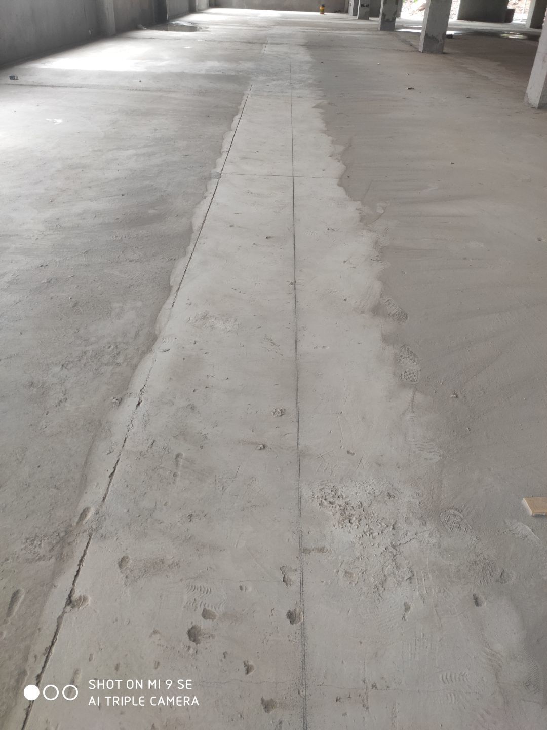 水溝貼磚完成百分之八十 地坪打磨完成 參觀通道鋼柱立完