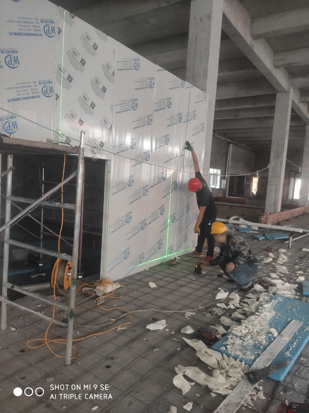 1.凍庫總體施工完成百分之八十 2.瓷磚完成百分之五十 3.垃圾清理,地面衛生打掃