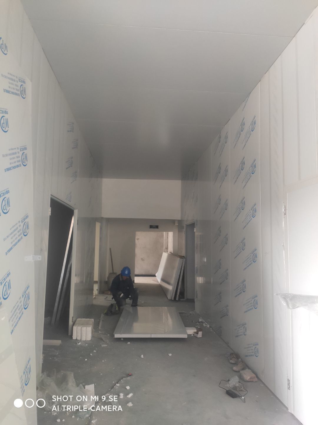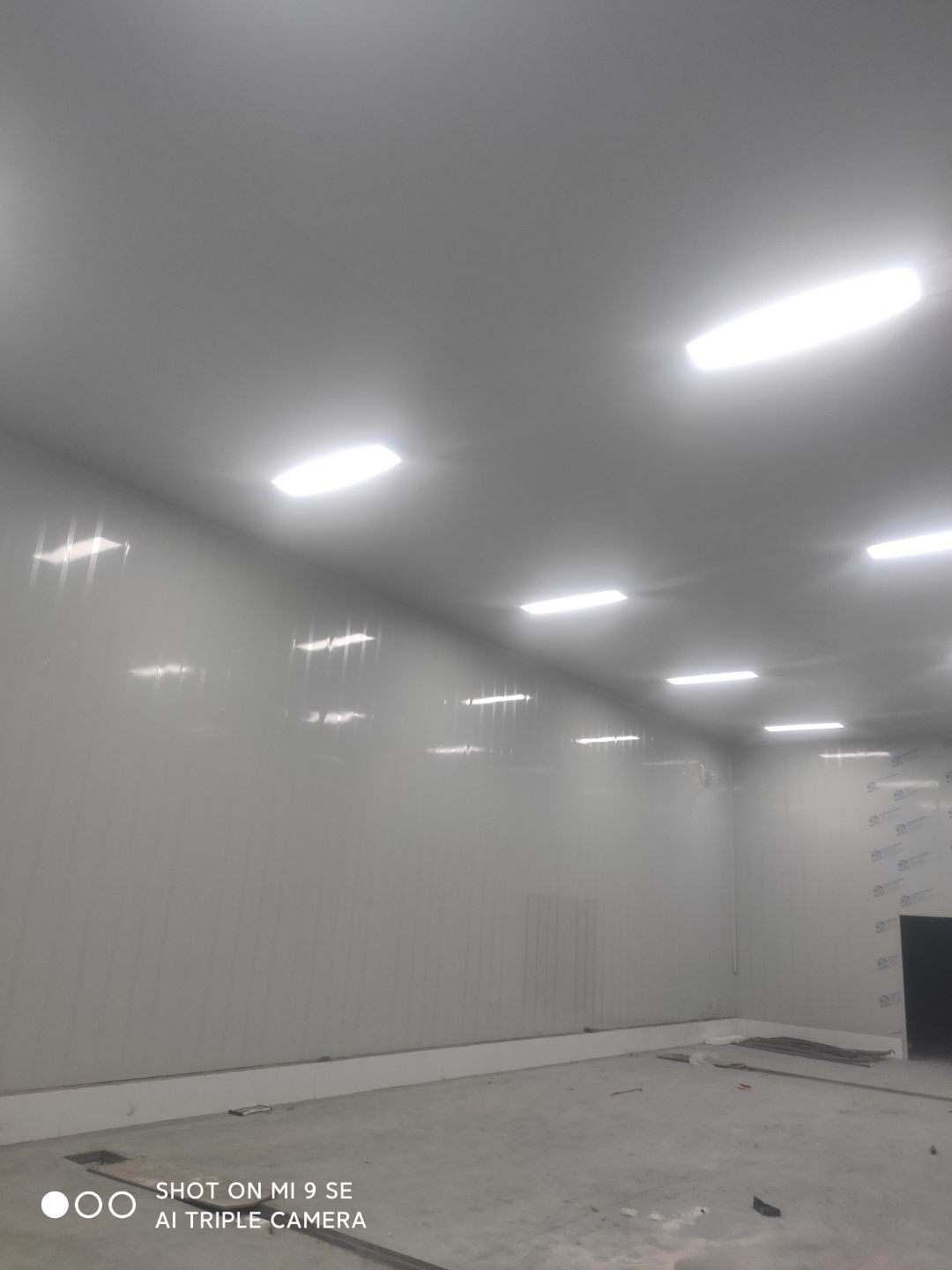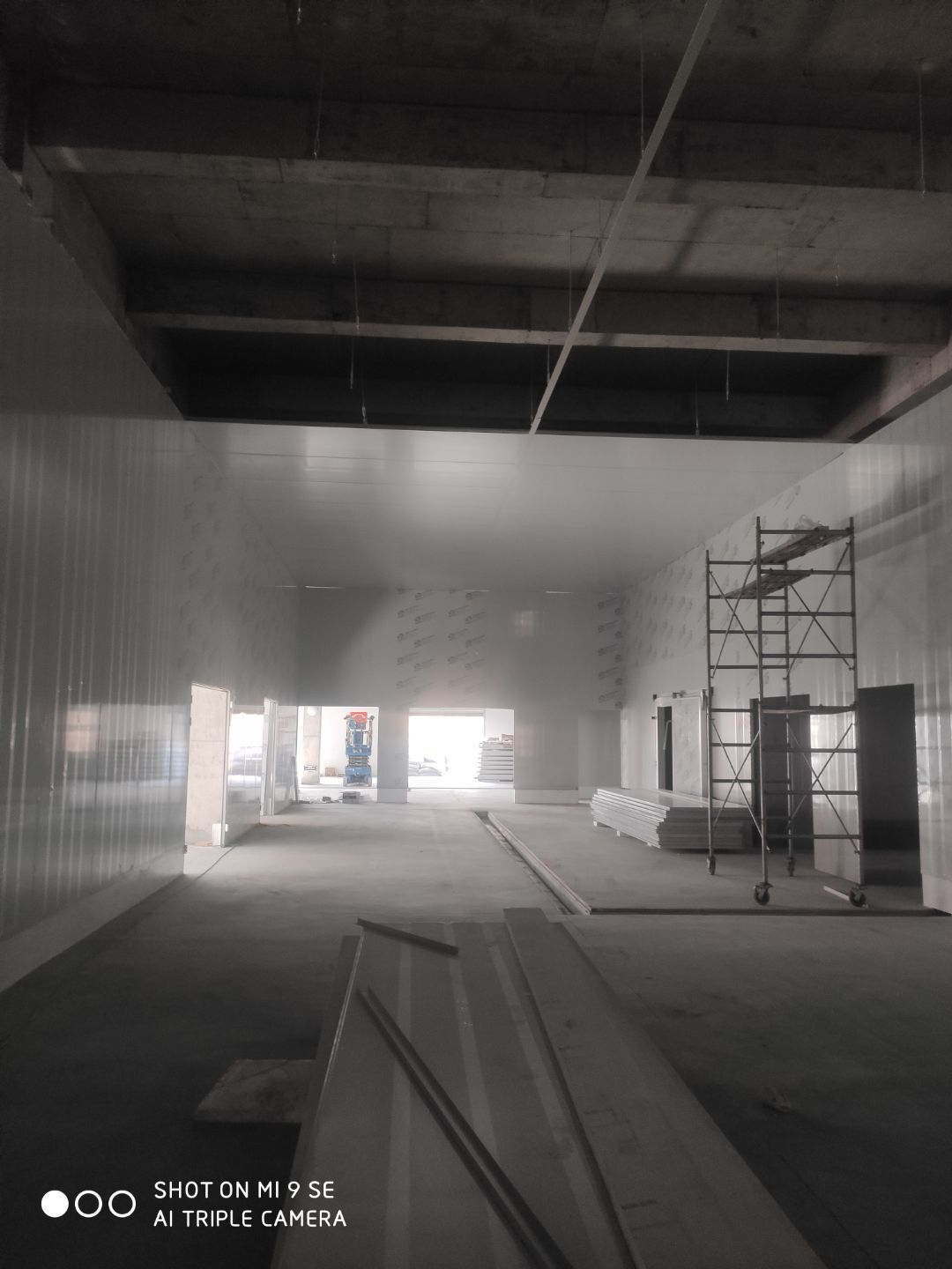 墻板頂板完成百分之九十 凍庫設備安裝完成 車間水電安裝已經開始 乳膠漆進場