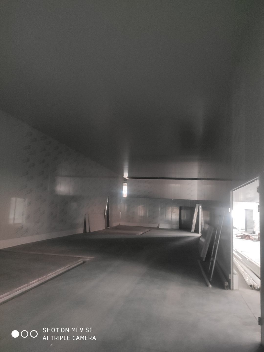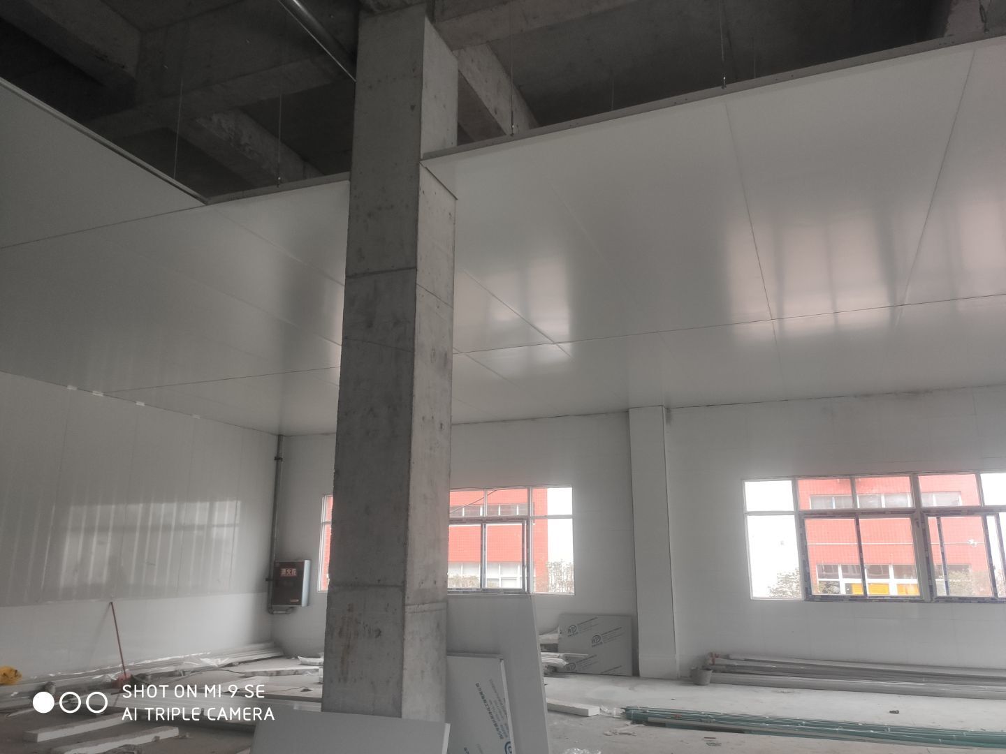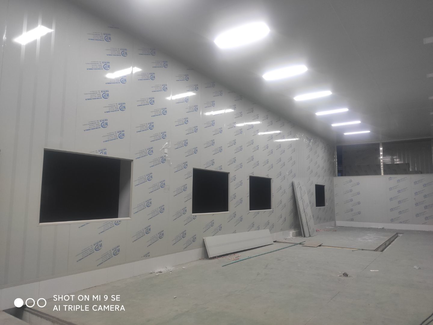 墻板頂板完成百分之九十 凍庫設備安裝完成 車間水電安裝已經開始 乳膠漆進場