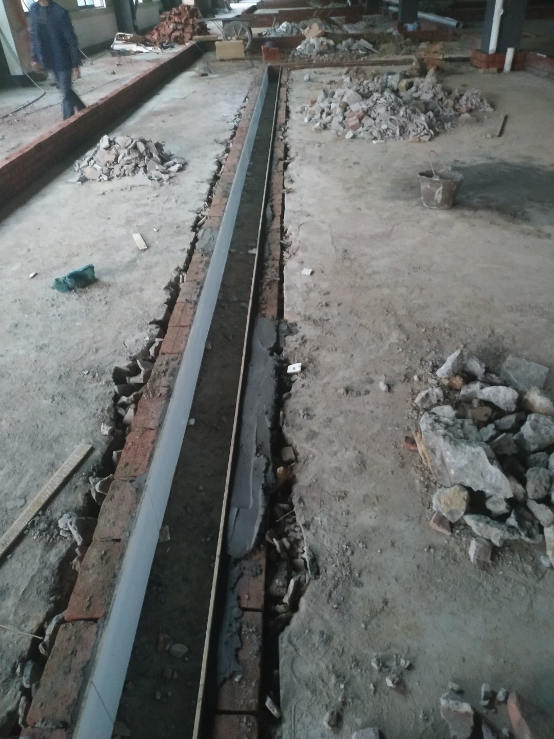 車間安裝現場臨時配電箱和臨時用水,車間排水溝放線,切縫完成40%。