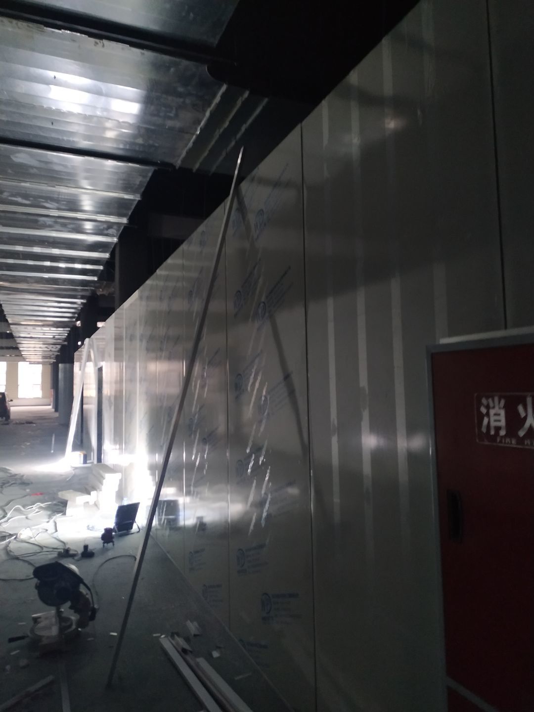 彩鋼板墻板安裝完成70%,頂板安裝完成30%,風管安裝完成70%。