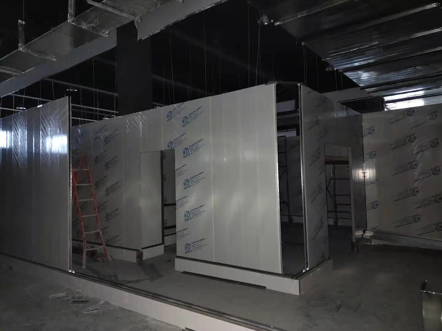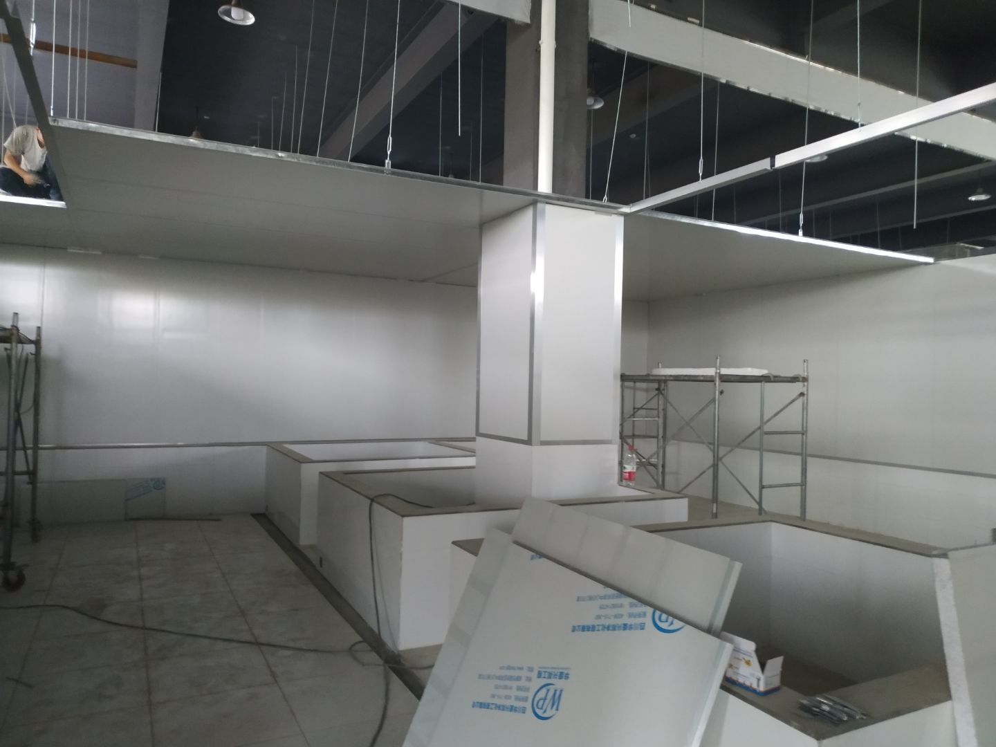 彩鋼頂板安裝完成,圓弧安裝完成35%,門制作安裝完成約50%;排風口和送風口安裝完成20%。