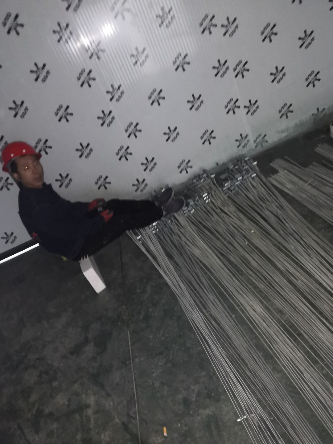 1.掛吊筋T鋁施工,墻體打膠條,做門裝門 2.收拾邊角