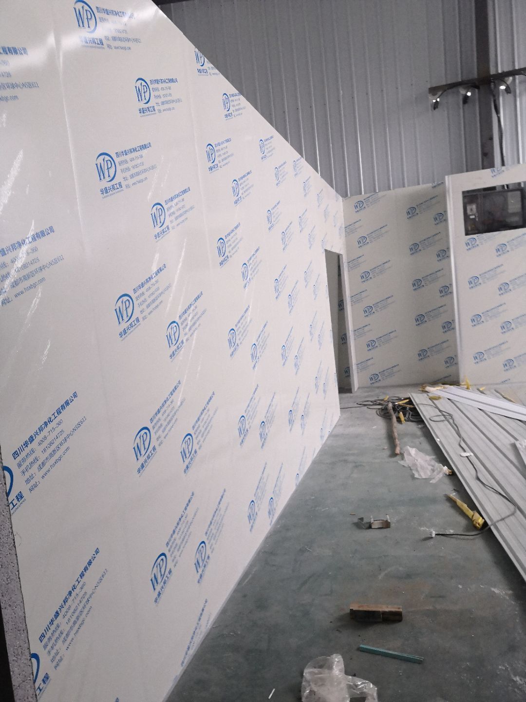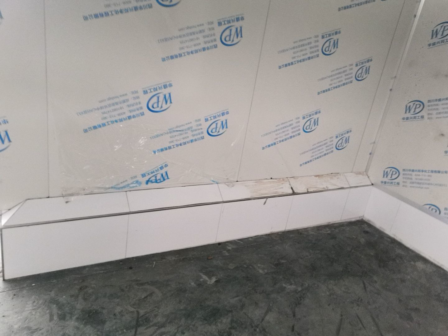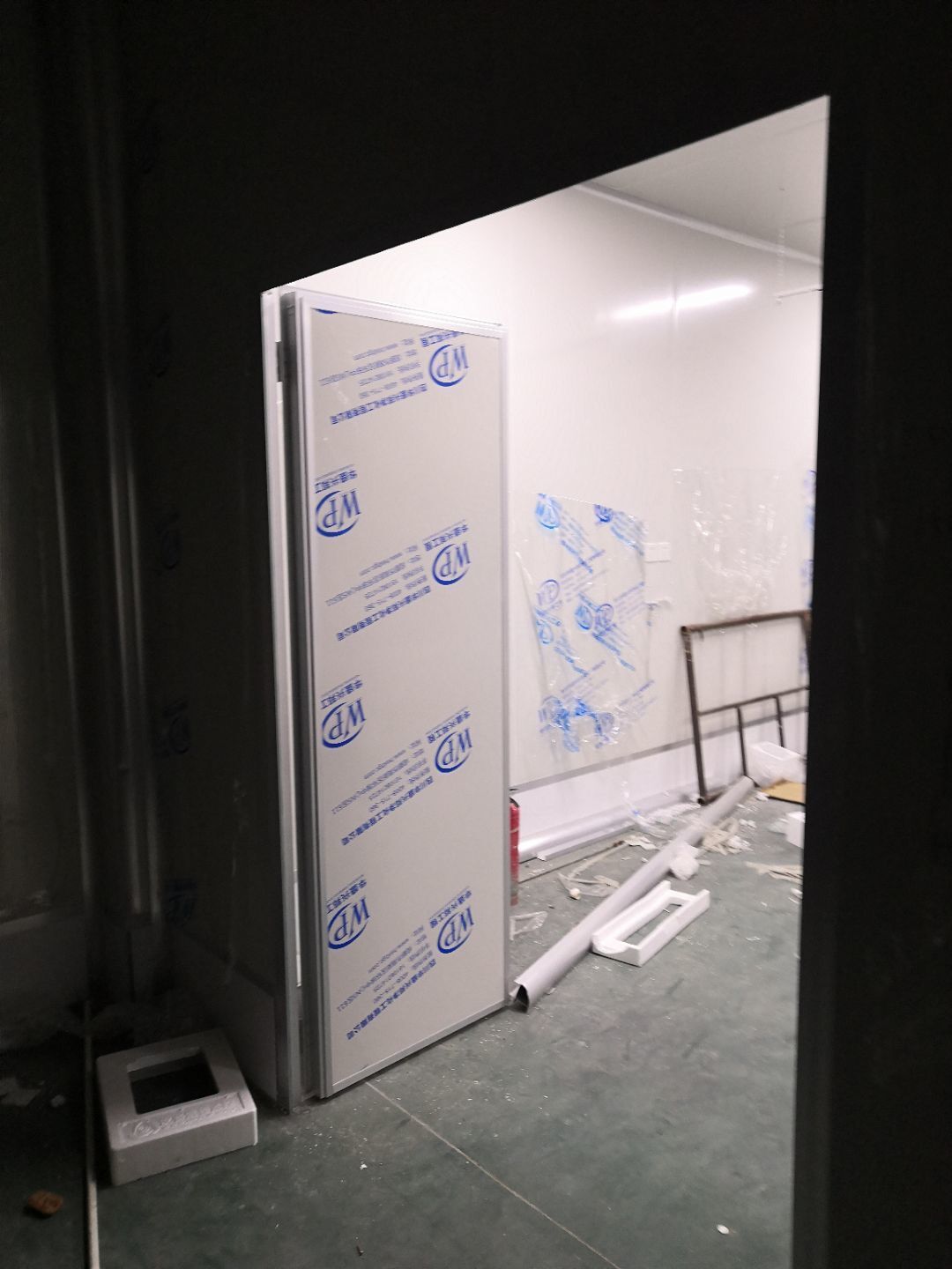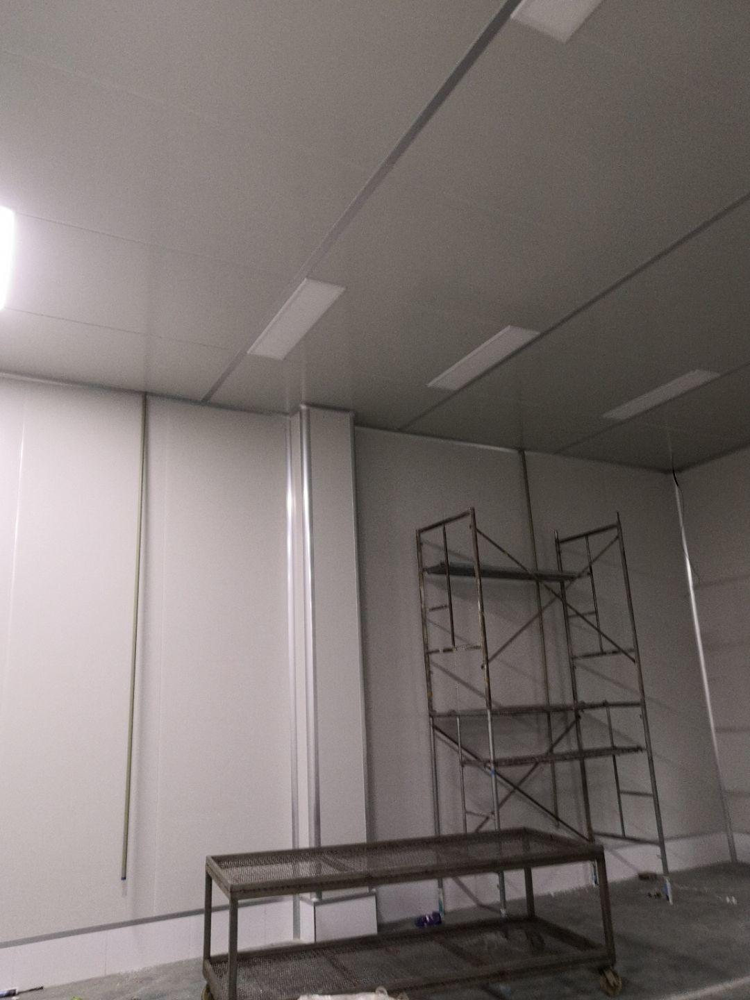 1.打膠,拍圓弧,做風(fēng)淋室,裝觀察窗 2.吊三防板 3.三防板裝燈,開關(guān),插座
