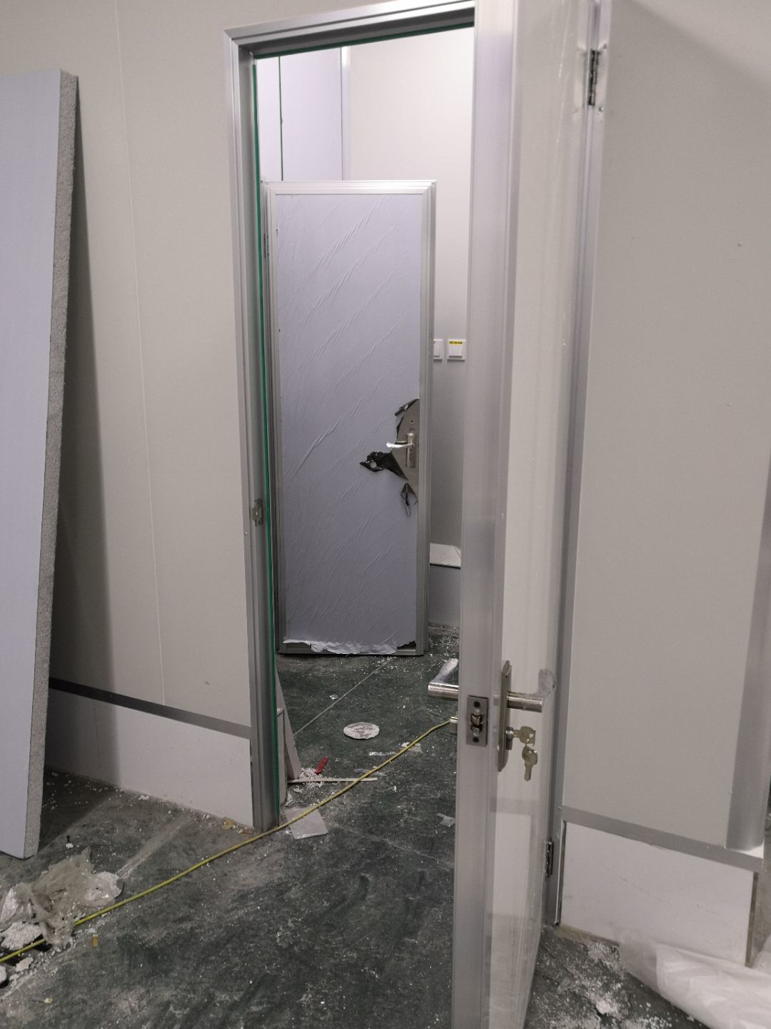 1.裝門,打膠,拍圓弧,做風(fēng)淋室 2.三防板吊頂