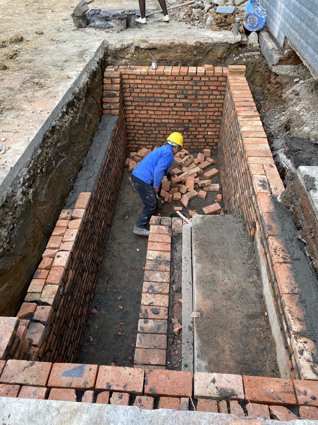 排水溝施工,油水分離池砌磚