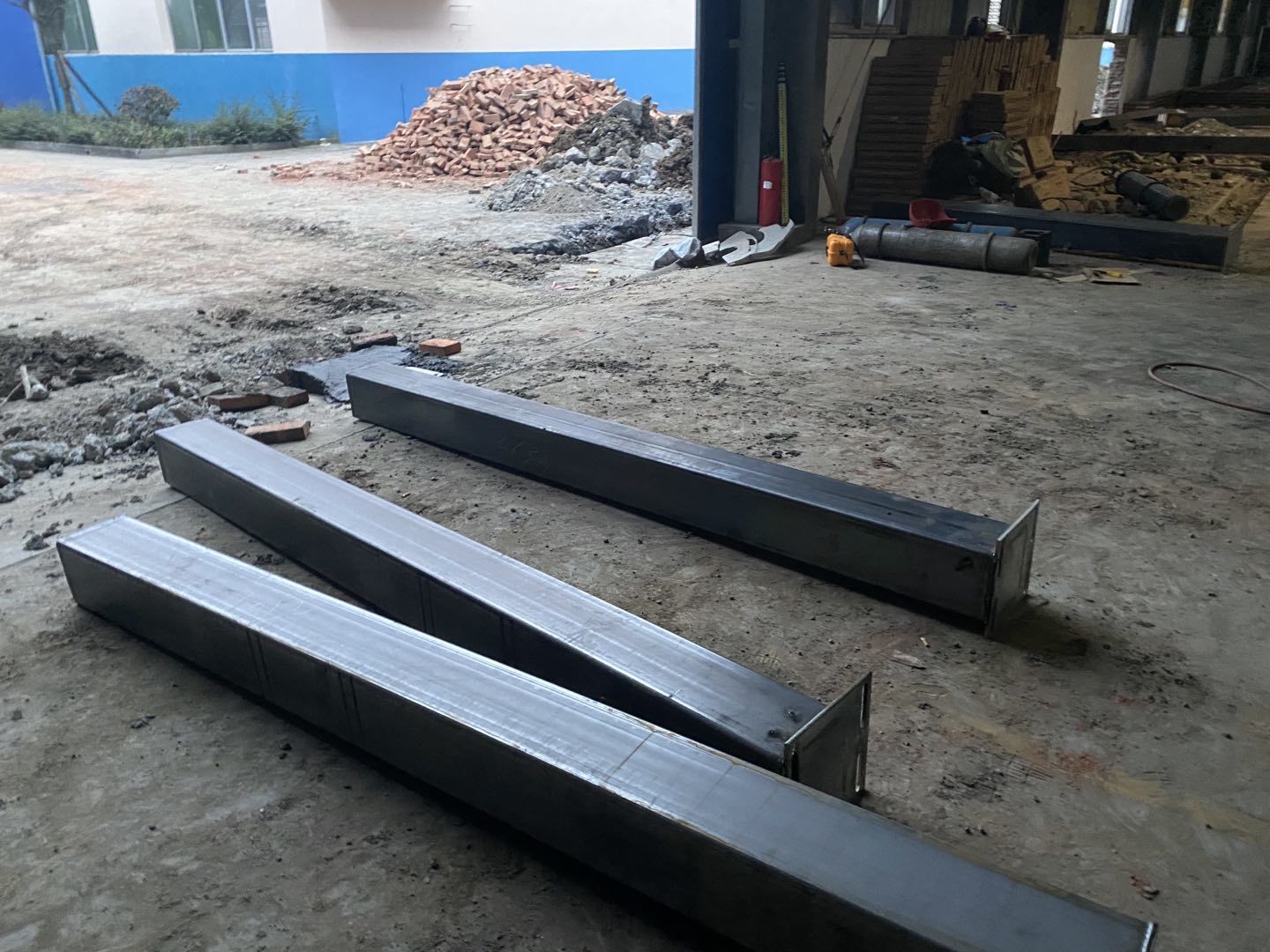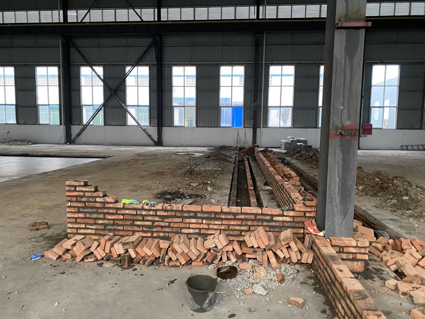 1,排水溝貼磚完成60米。 2,擋水墻砌筑完成80米。抹灰完成40米。 3,鋼平臺隊(duì)伍完成柱子材料下料,預(yù)埋件安裝澆筑混凝土。 4,凍庫防水完成百分之九十。