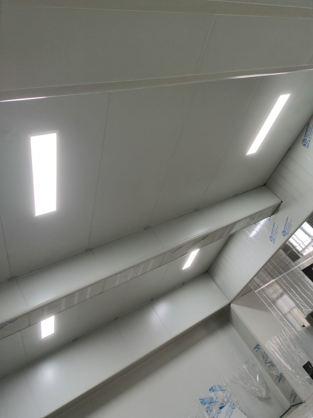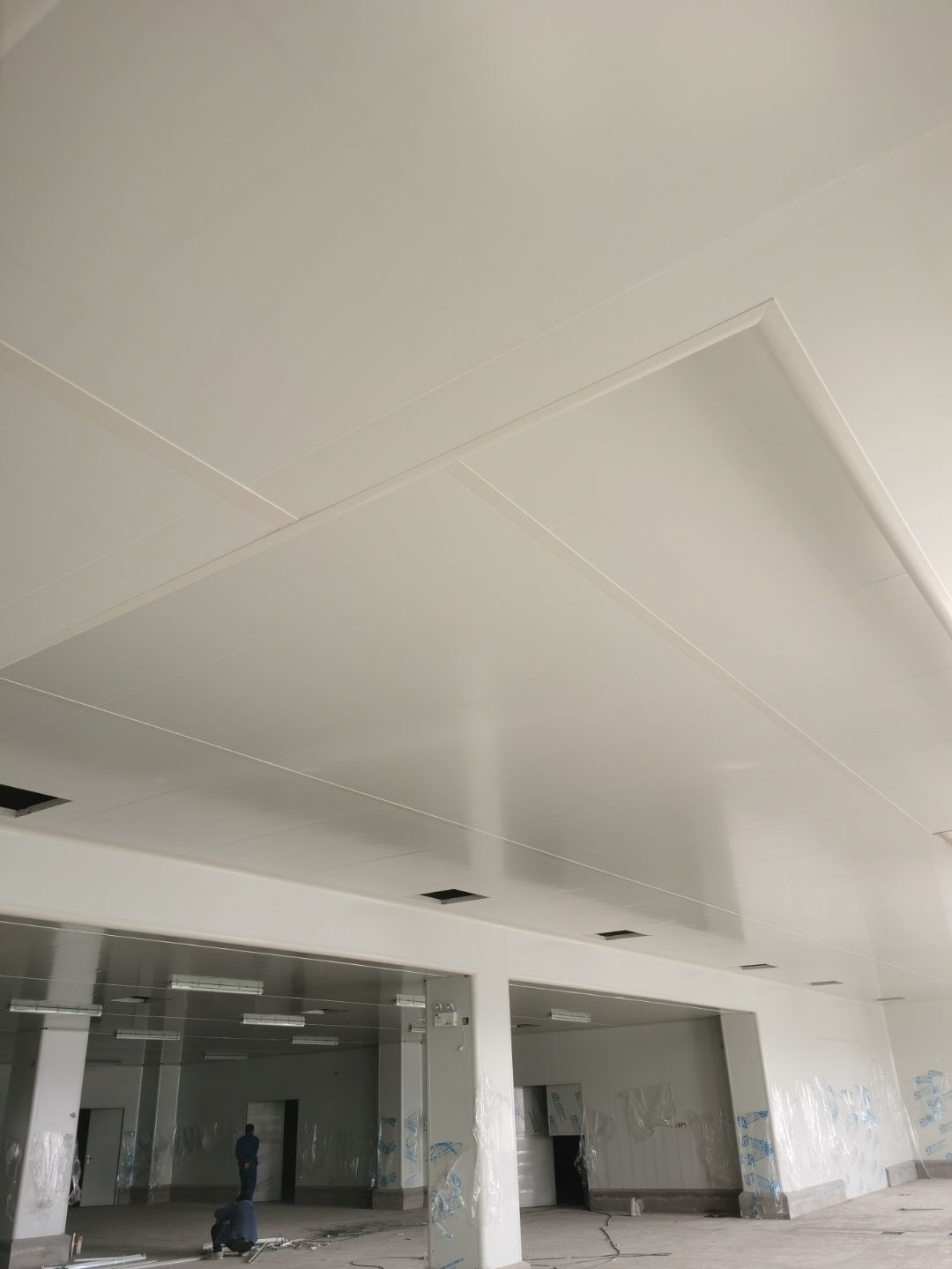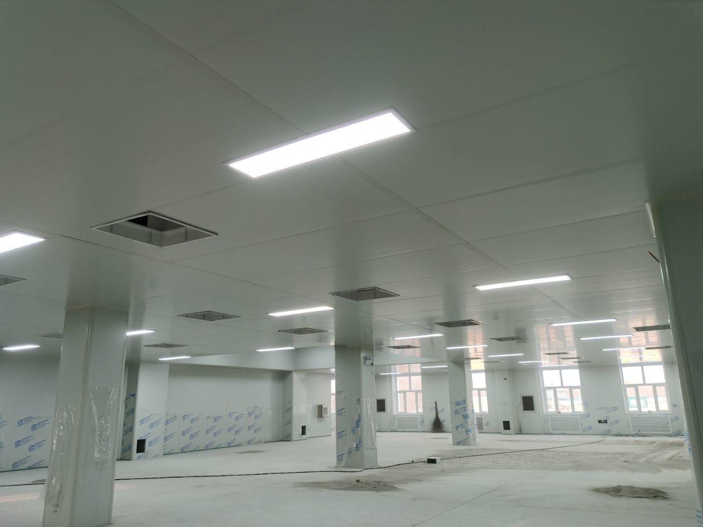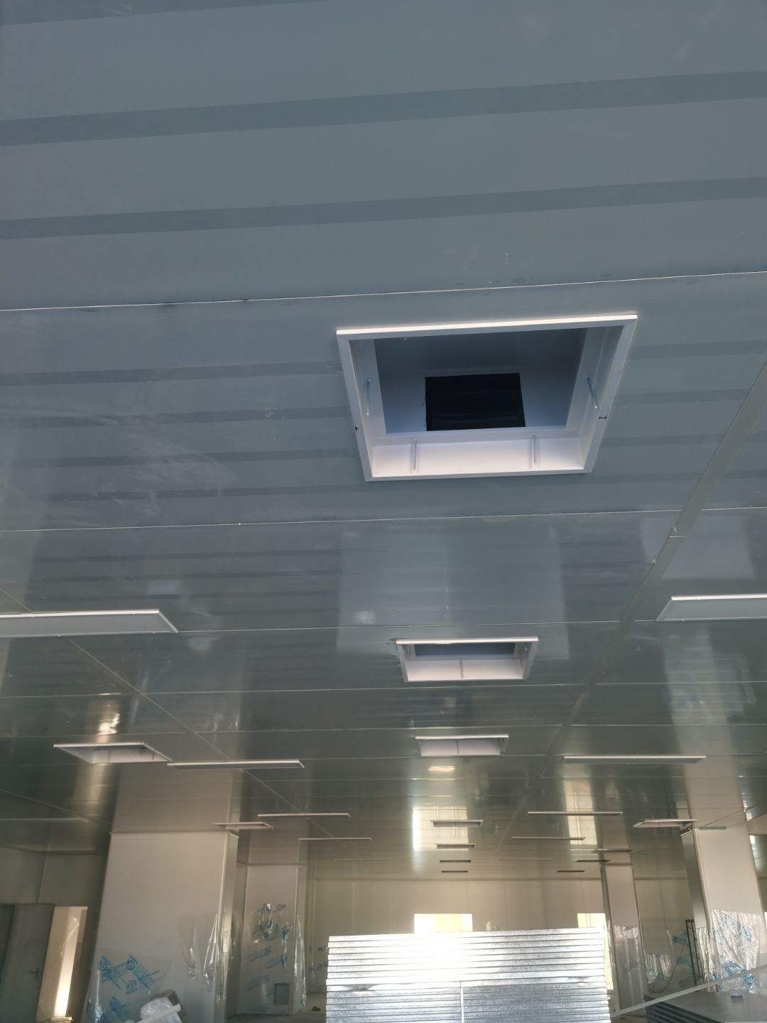 1.彩鋼吊頂完成60 2.彩鋼門制作下料完成65%。 3.風淋室制作完成。 4.現場衛生清理完成 5新風系統材料已進場 6彩風系統保溫工作完成30%