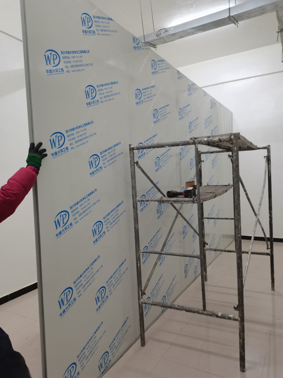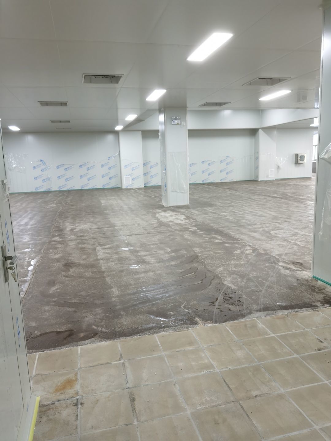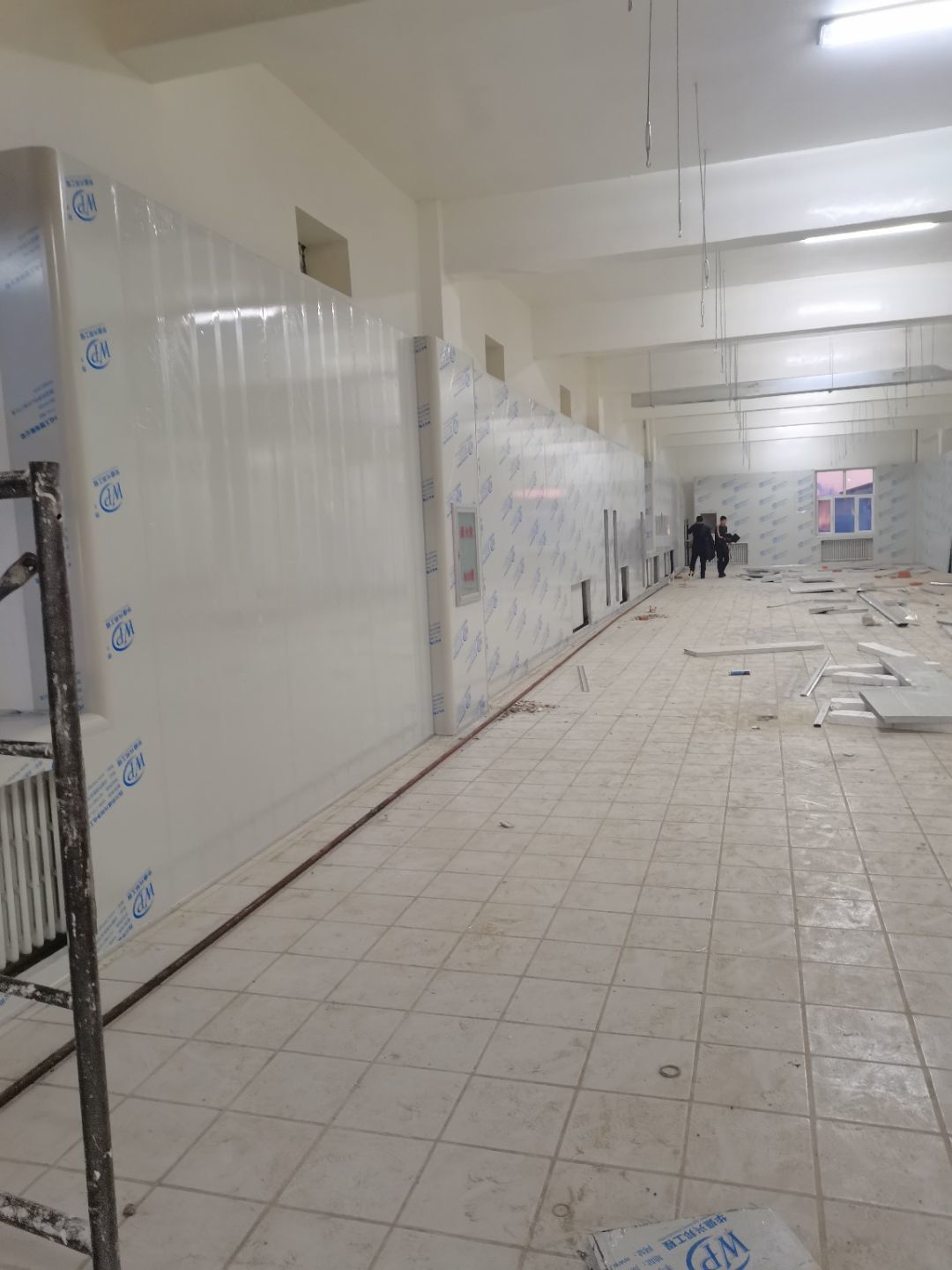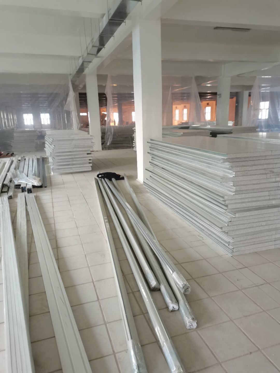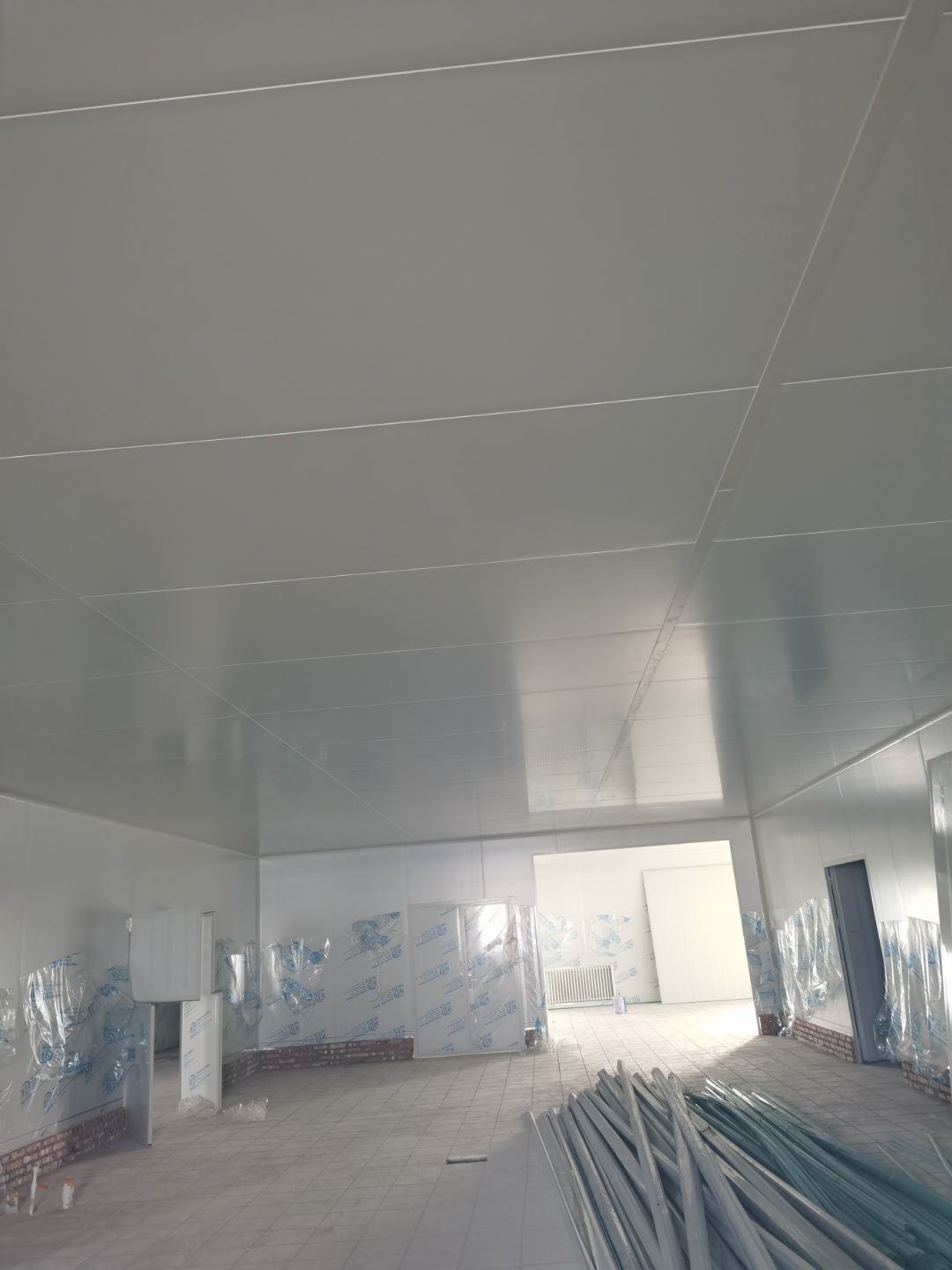 1.彩鋼吊頂完成60 2.彩鋼門制作下料完成65%。 3.風淋室制作完成。 4.現場衛生清理完成 5新風系統材料已進場 6彩風系統保溫工作完成30%