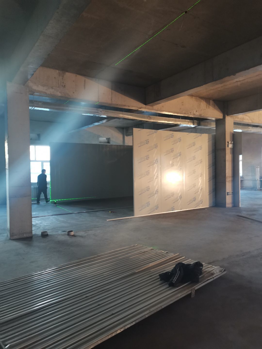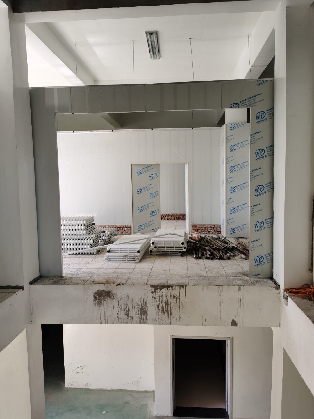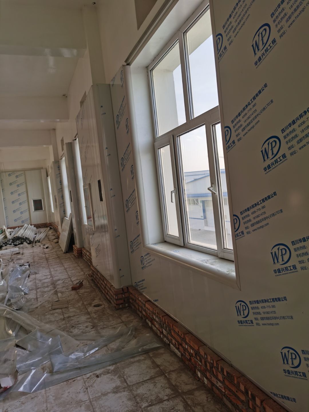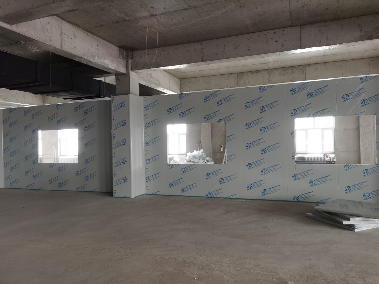1.彩鋼吊頂完成60 2.彩鋼門制作下料完成65%。 3.風淋室制作完成。 4.現場衛生清理完成 5新風系統材料已進場 6彩風系統保溫工作完成30%