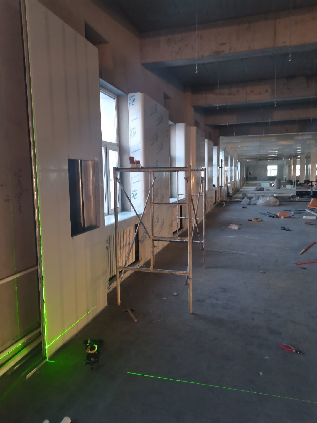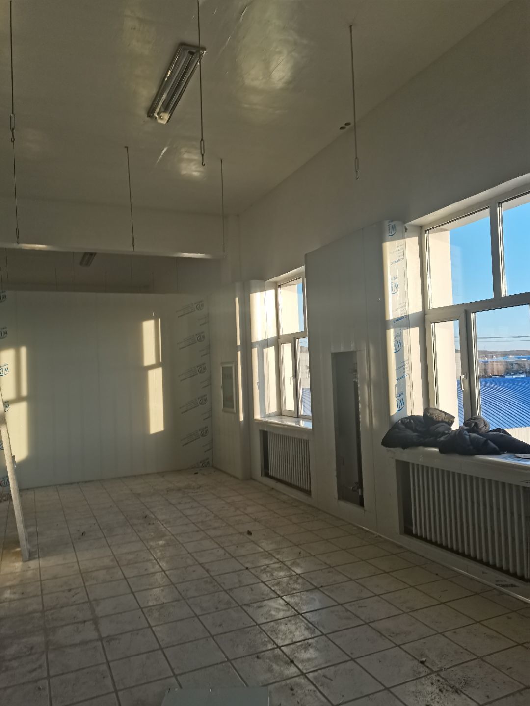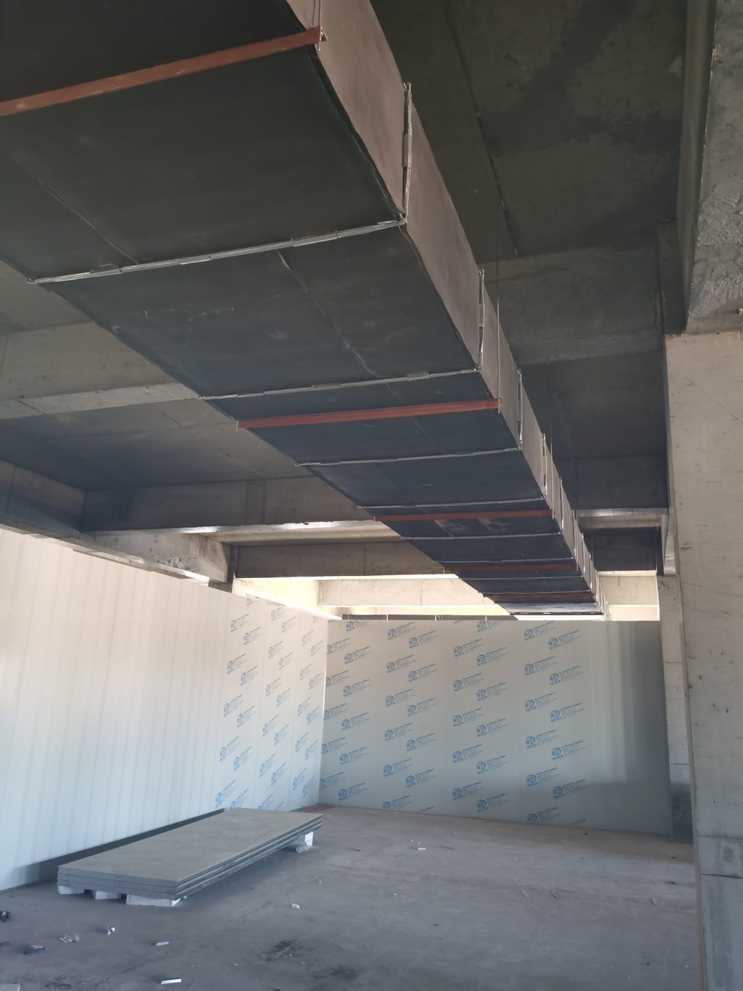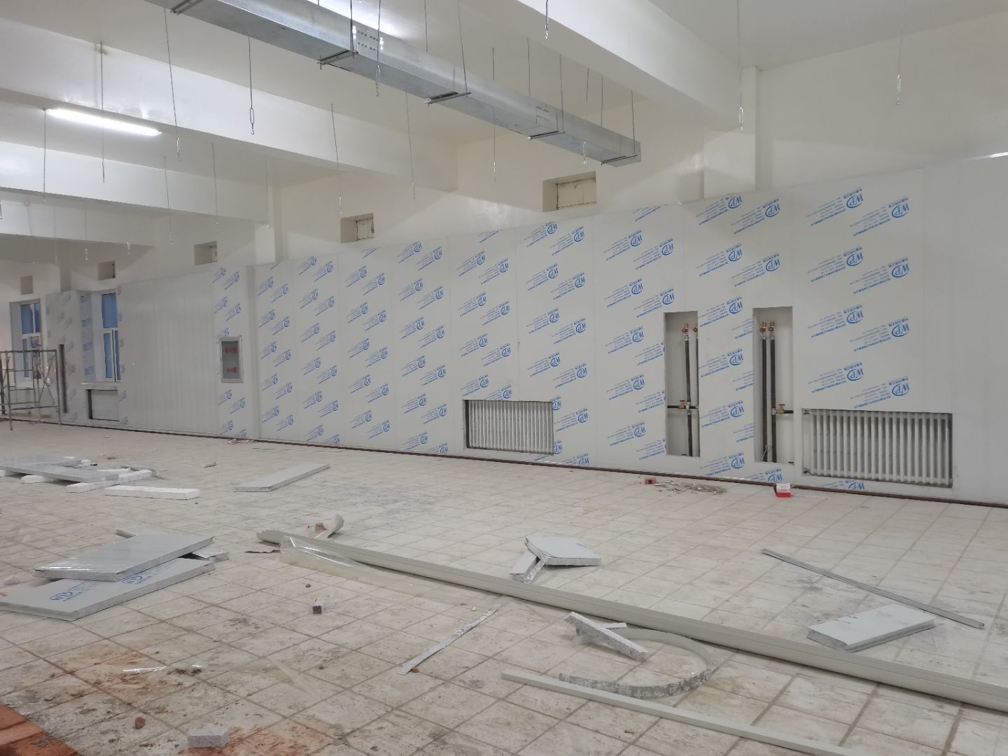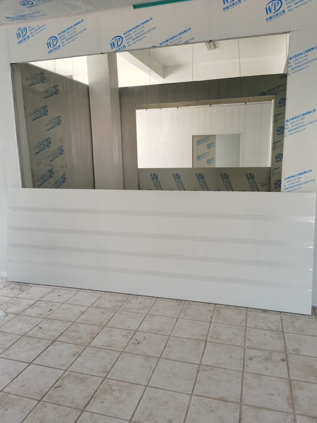 1.彩鋼吊頂完成60 2.彩鋼門制作下料完成65%。 3.風淋室制作完成。 4.現場衛生清理完成 5新風系統材料已進場 6彩風系統保溫工作完成30%
