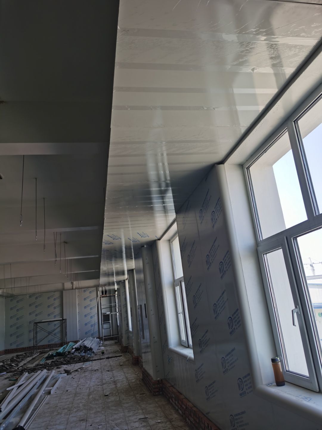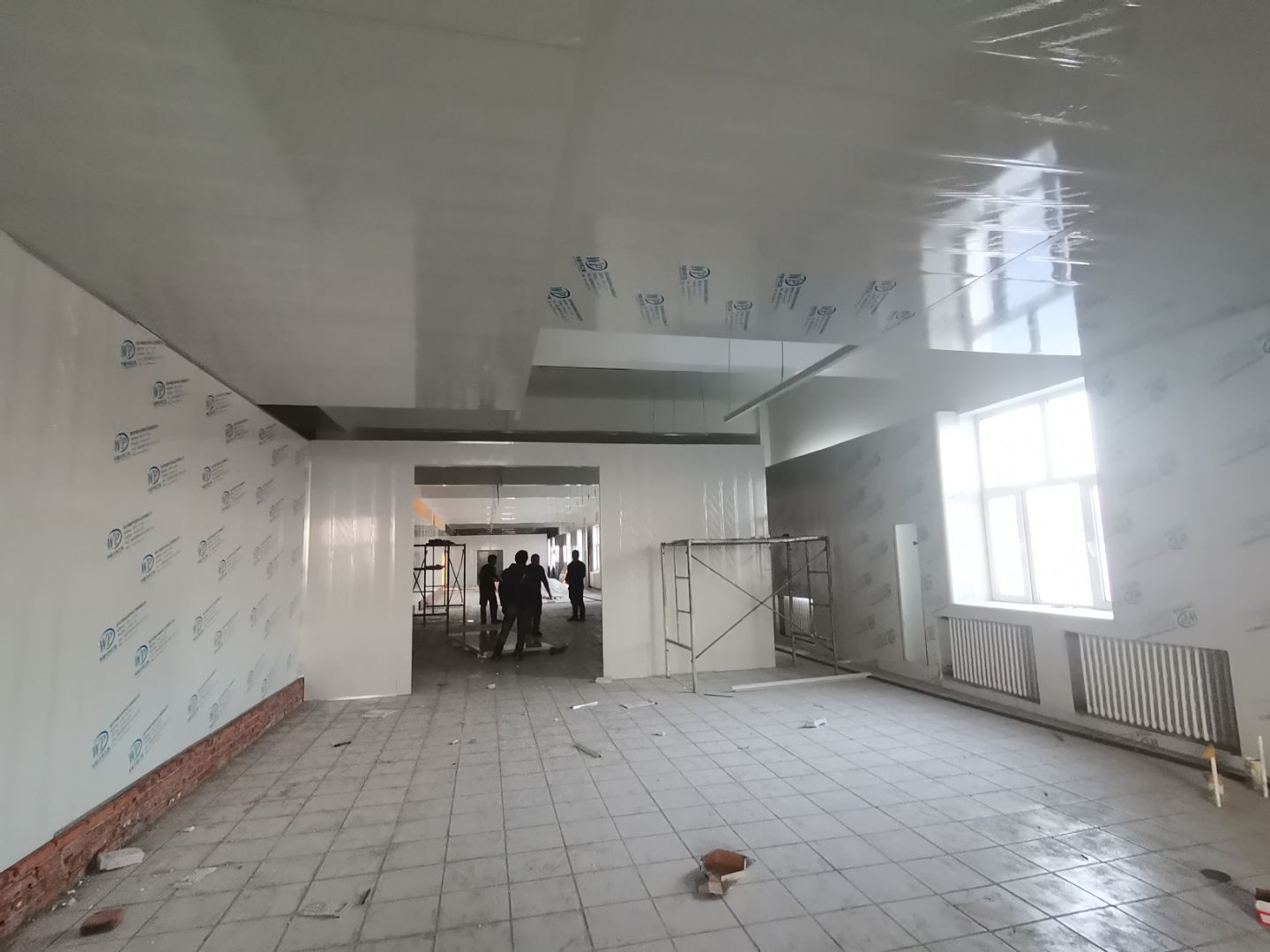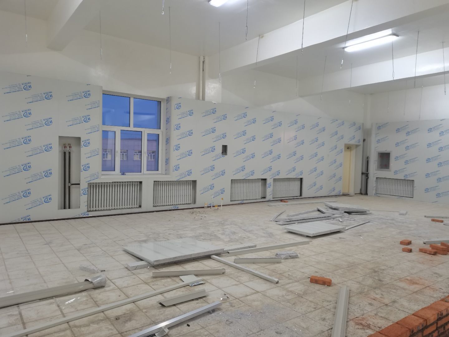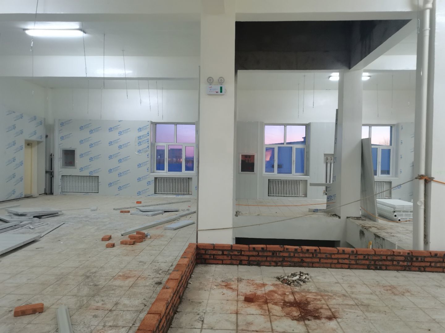 1.彩鋼吊頂完成60 2.彩鋼門制作下料完成65%。 3.風淋室制作完成。 4.現場衛生清理完成 5新風系統材料已進場 6彩風系統保溫工作完成30%