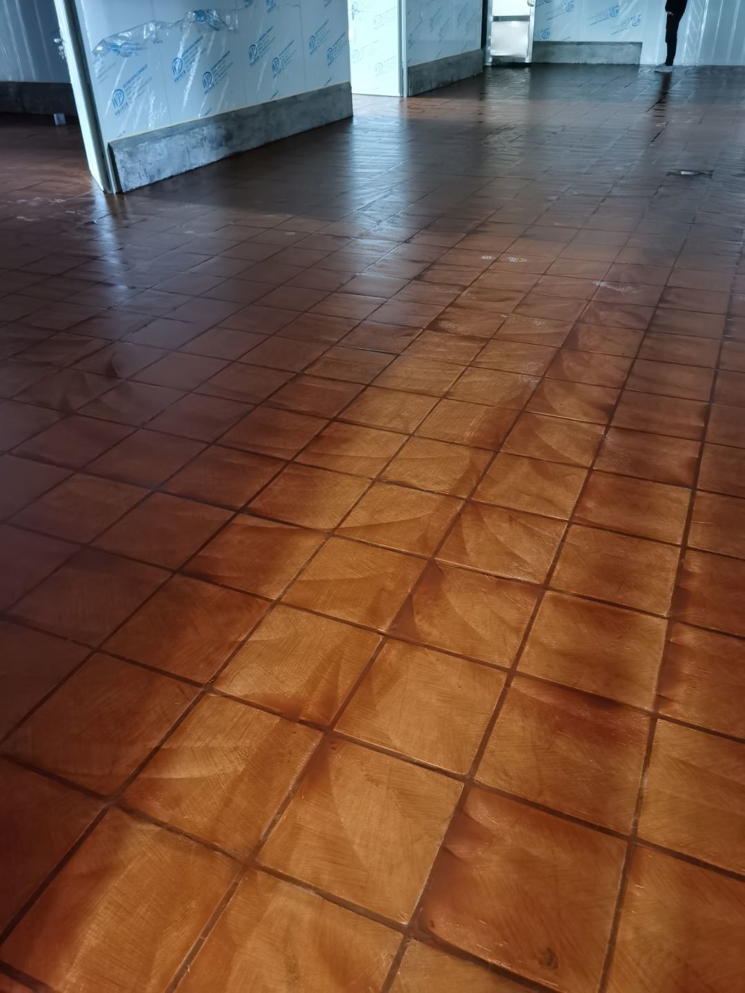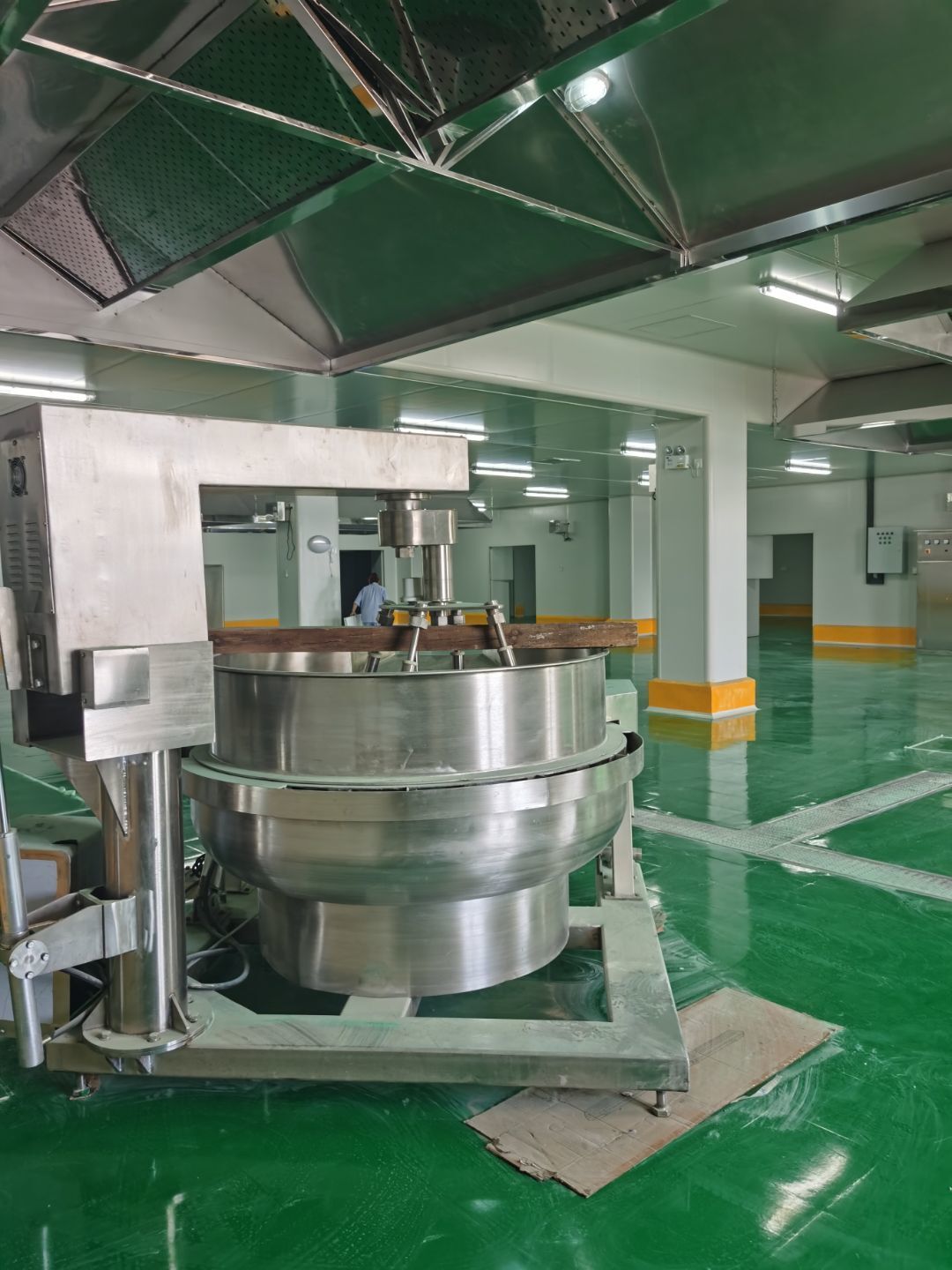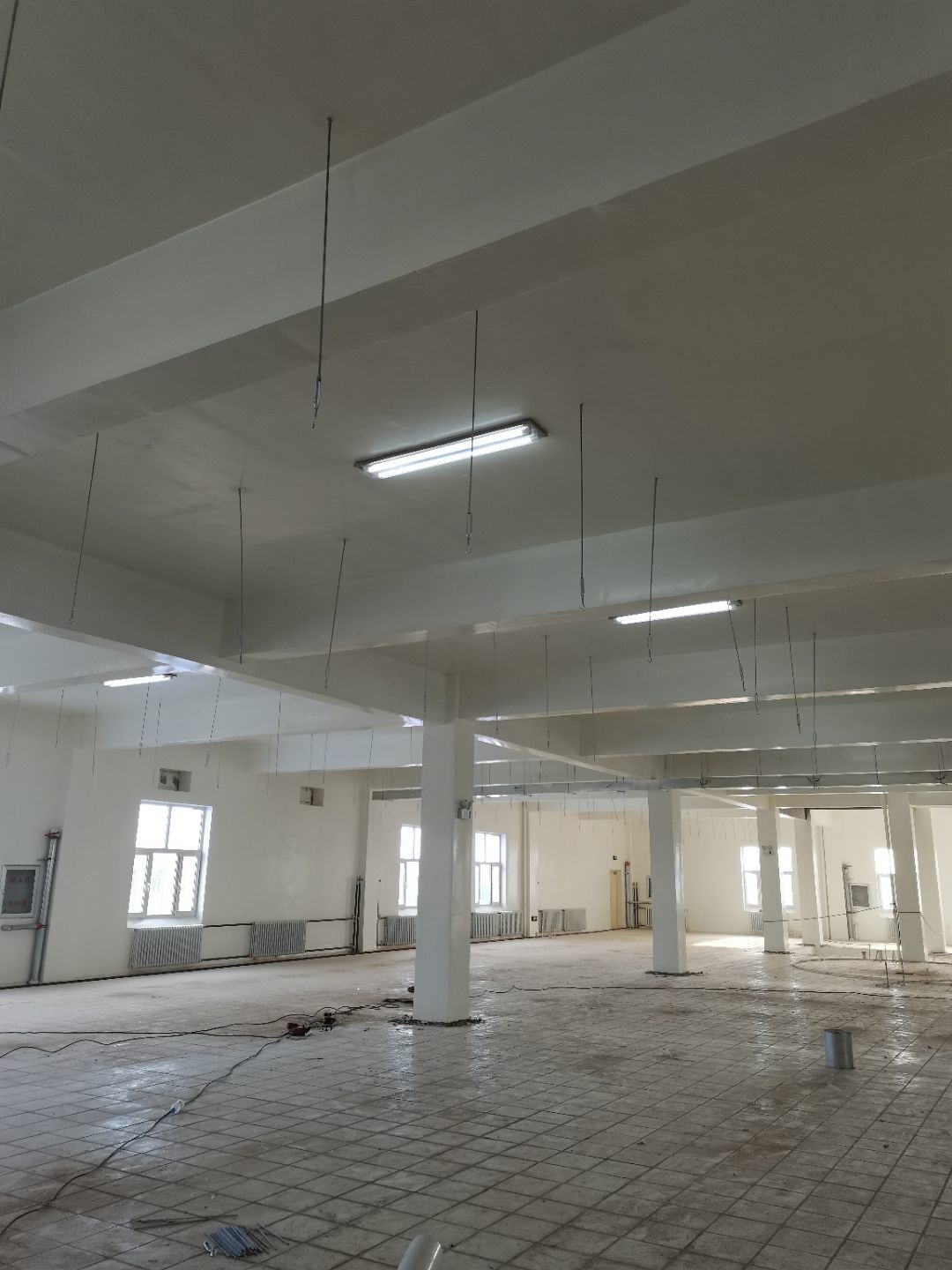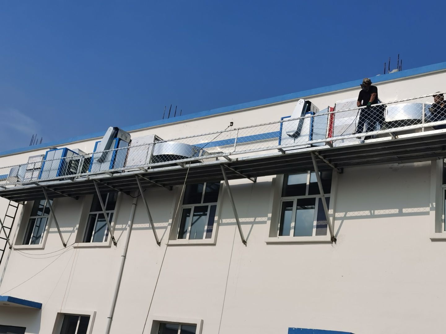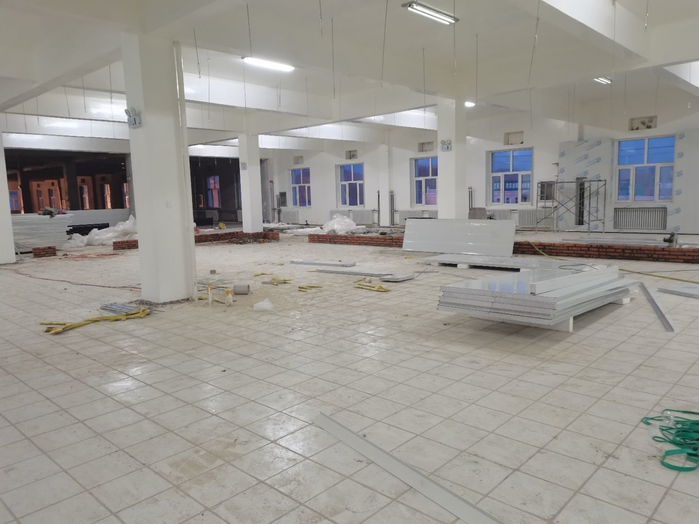1.彩鋼吊頂完成95%; 2.煙罩風管完成15%; 3.彩鋼板收尾工作完成65%; 4.空調機組已進場; 5.環氧地坪完成100%;6.彩鋼門窗裝制作完成100%。