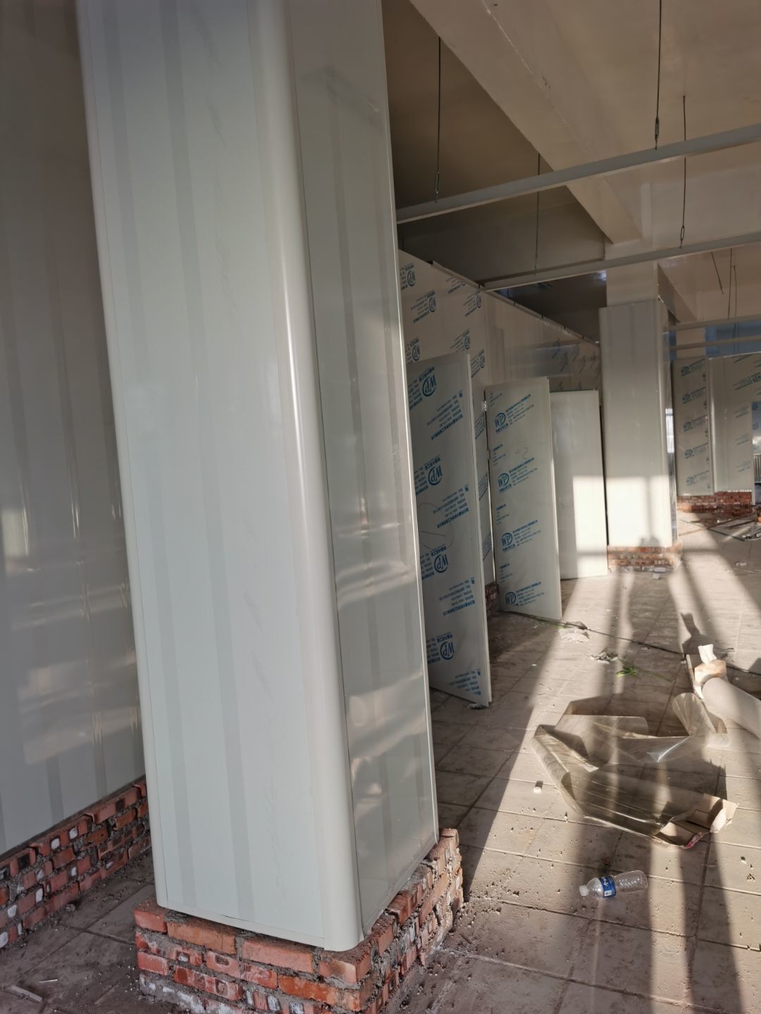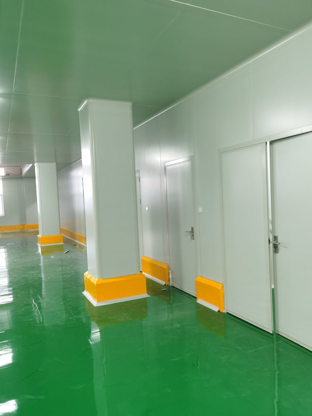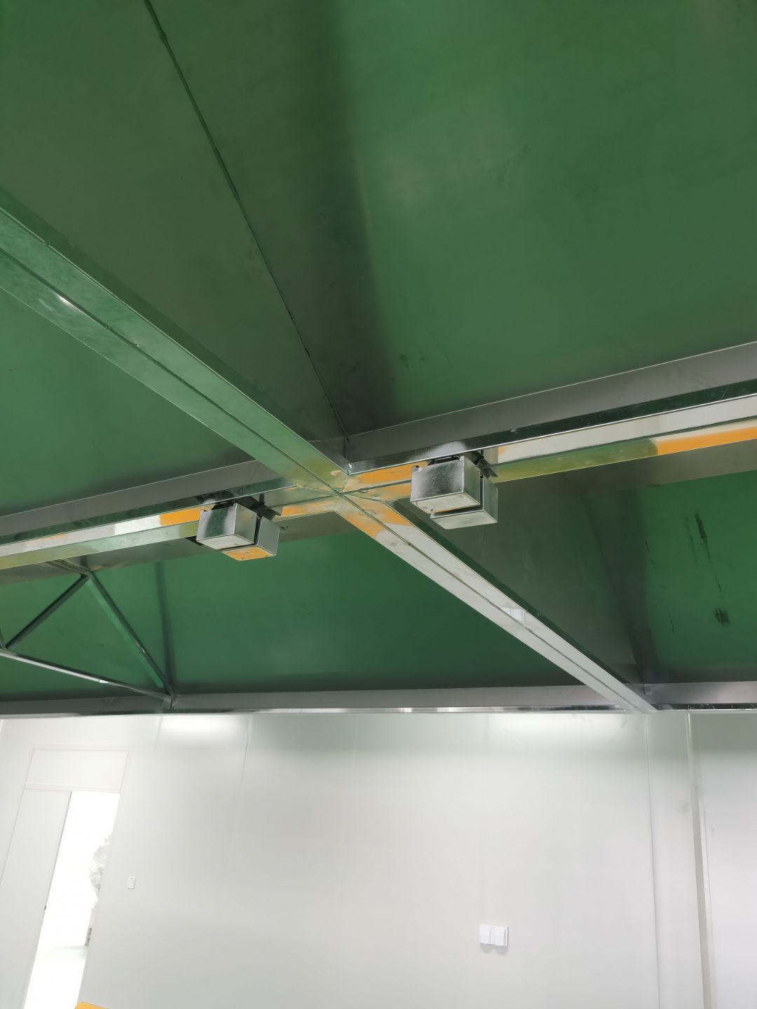 1.彩鋼吊頂完成25%。 2.彩鋼門制作下料完成65%。 3.風淋室制作完成。 4.包土建柱子10條