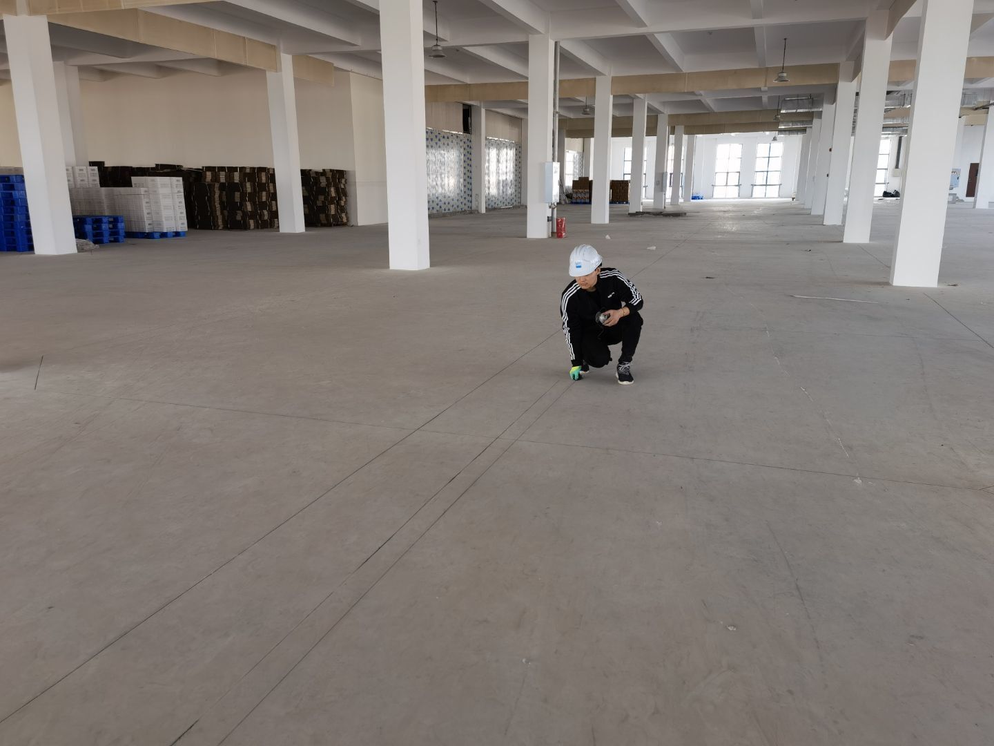 四川省牛丫牛食品有限公司廠房裝修現場:根據圖紙進行車間擋水墻放線,放線完成。