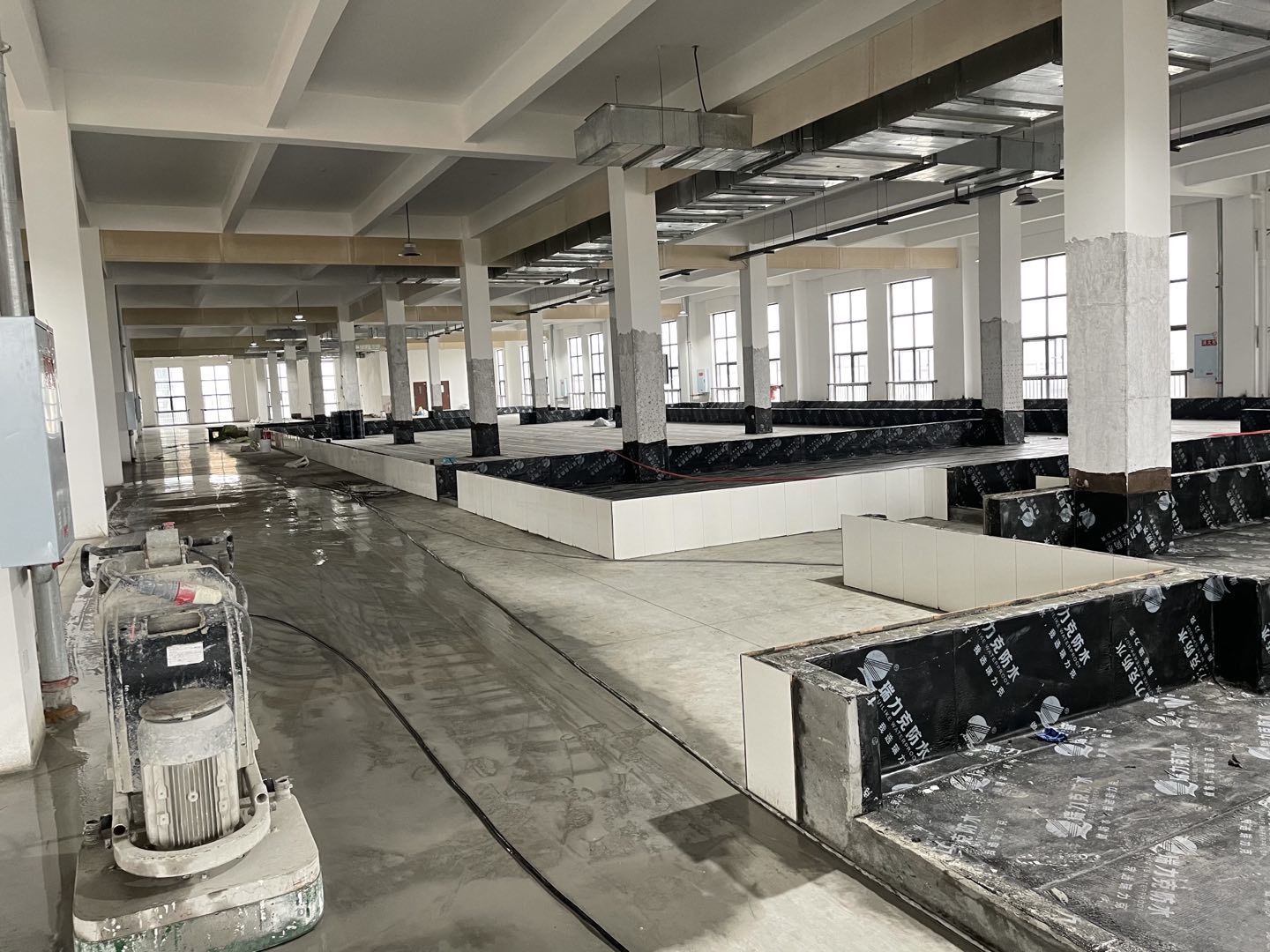 1.固化地坪完成度100%。不銹鋼排水溝焊接完成。