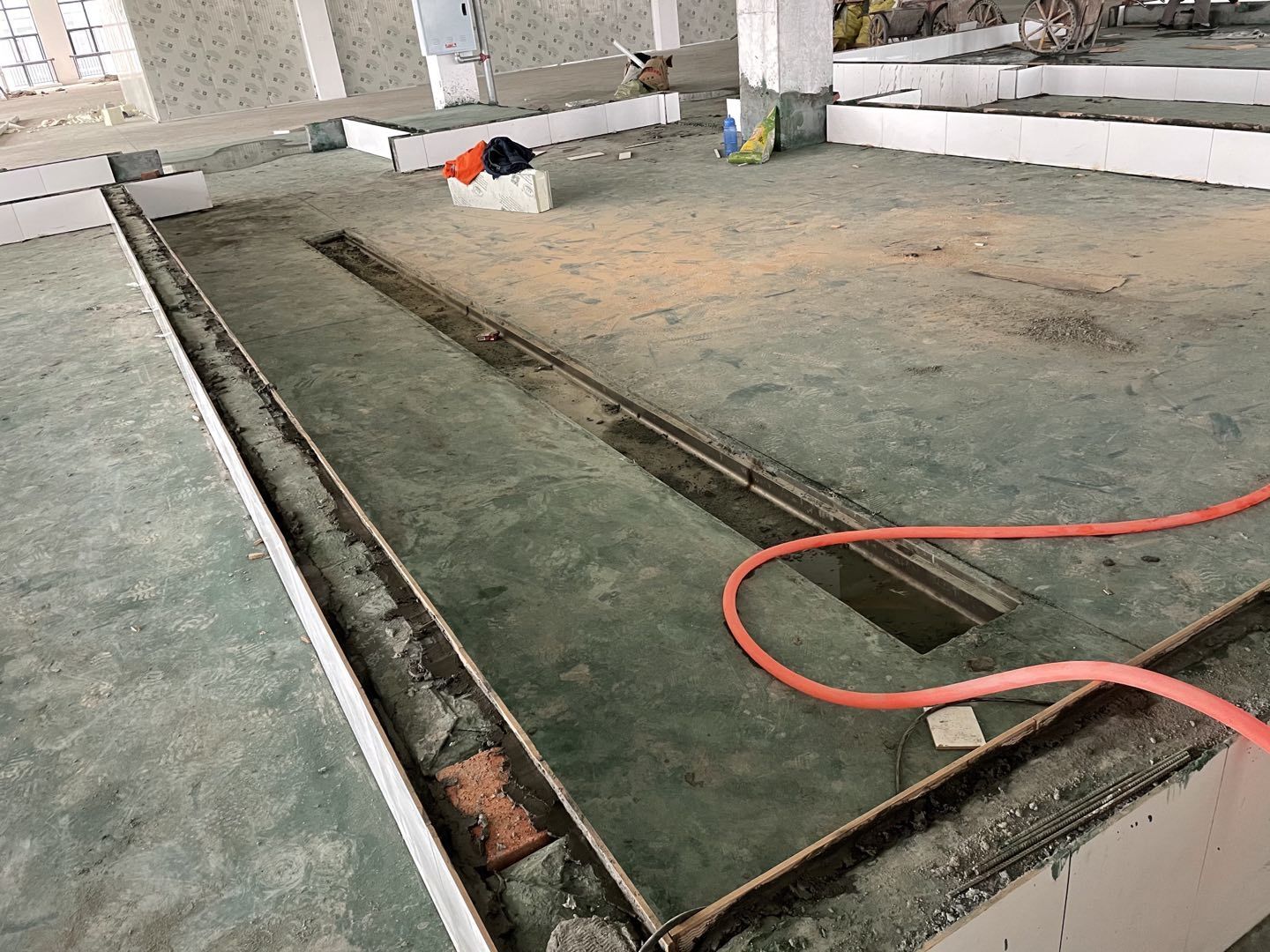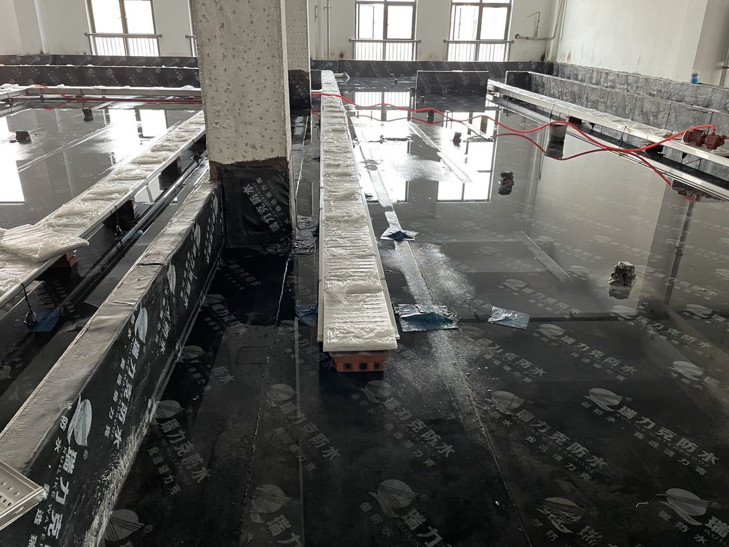 1.地坪基層防水施工完成70%。2.擋水墻加高完成100%,擋水墻測試完成。