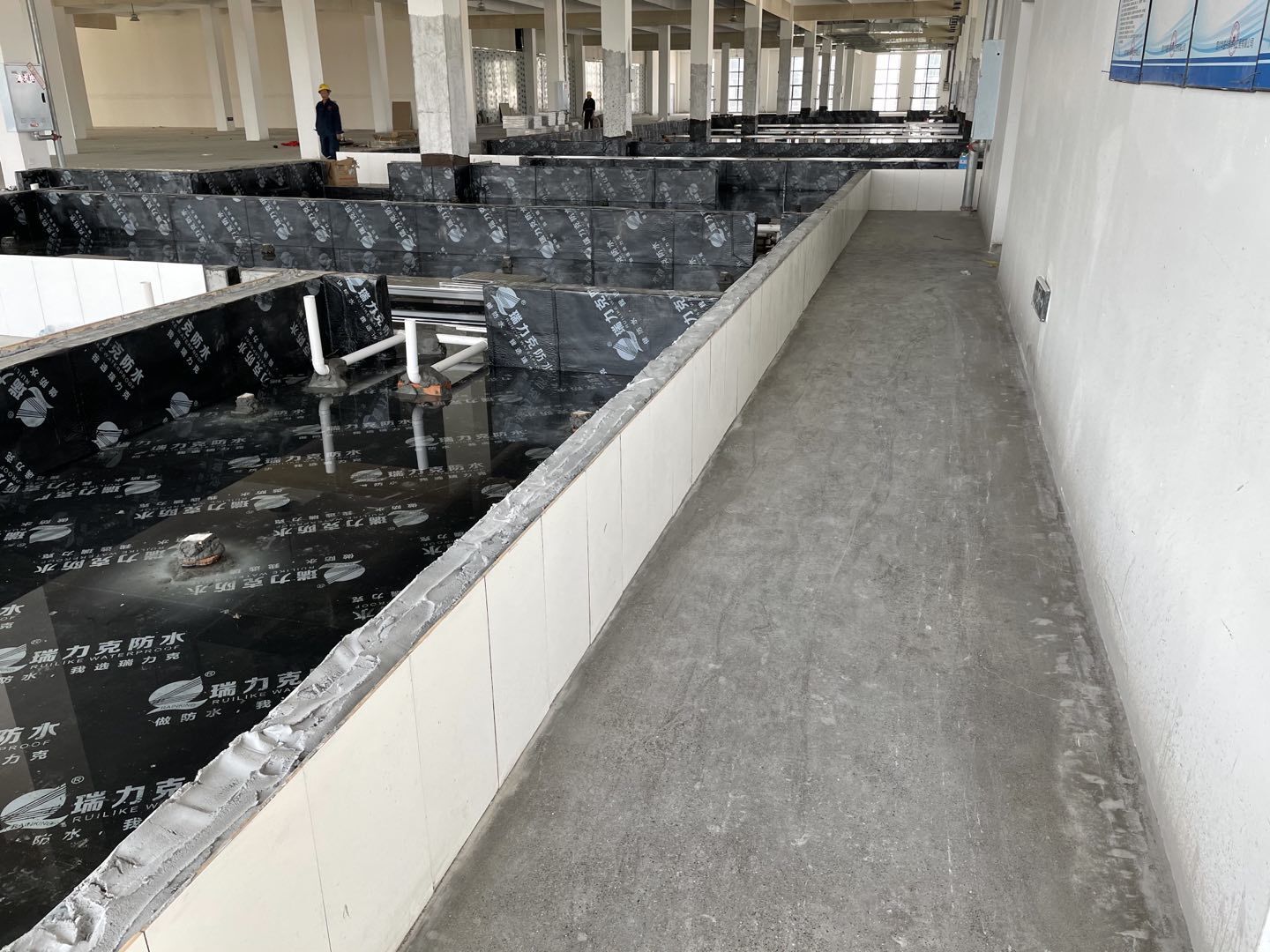 1.污水池墊層澆筑。2.擋水墻瓷磚完成40%。3.施工縫切割完成70%。