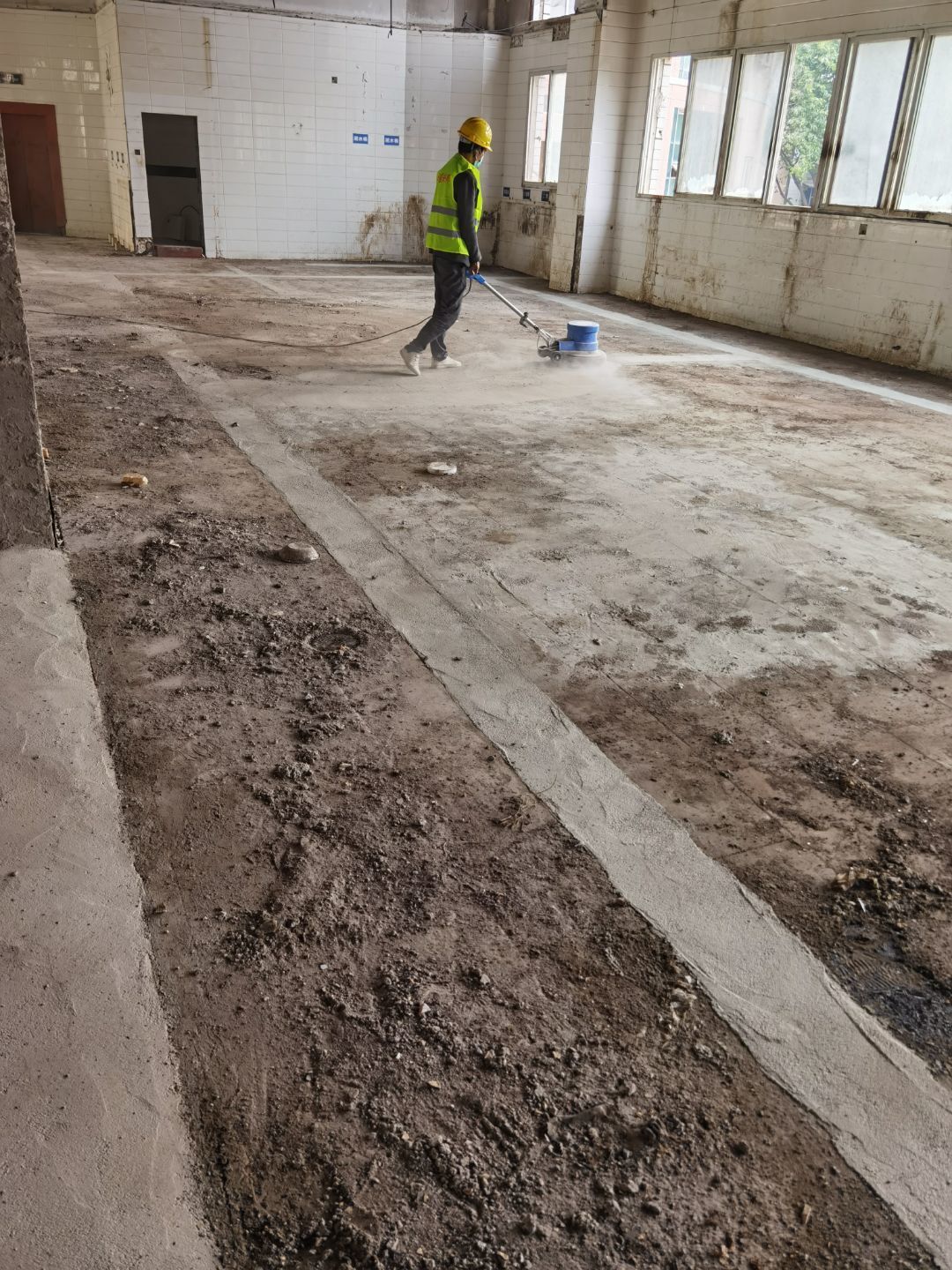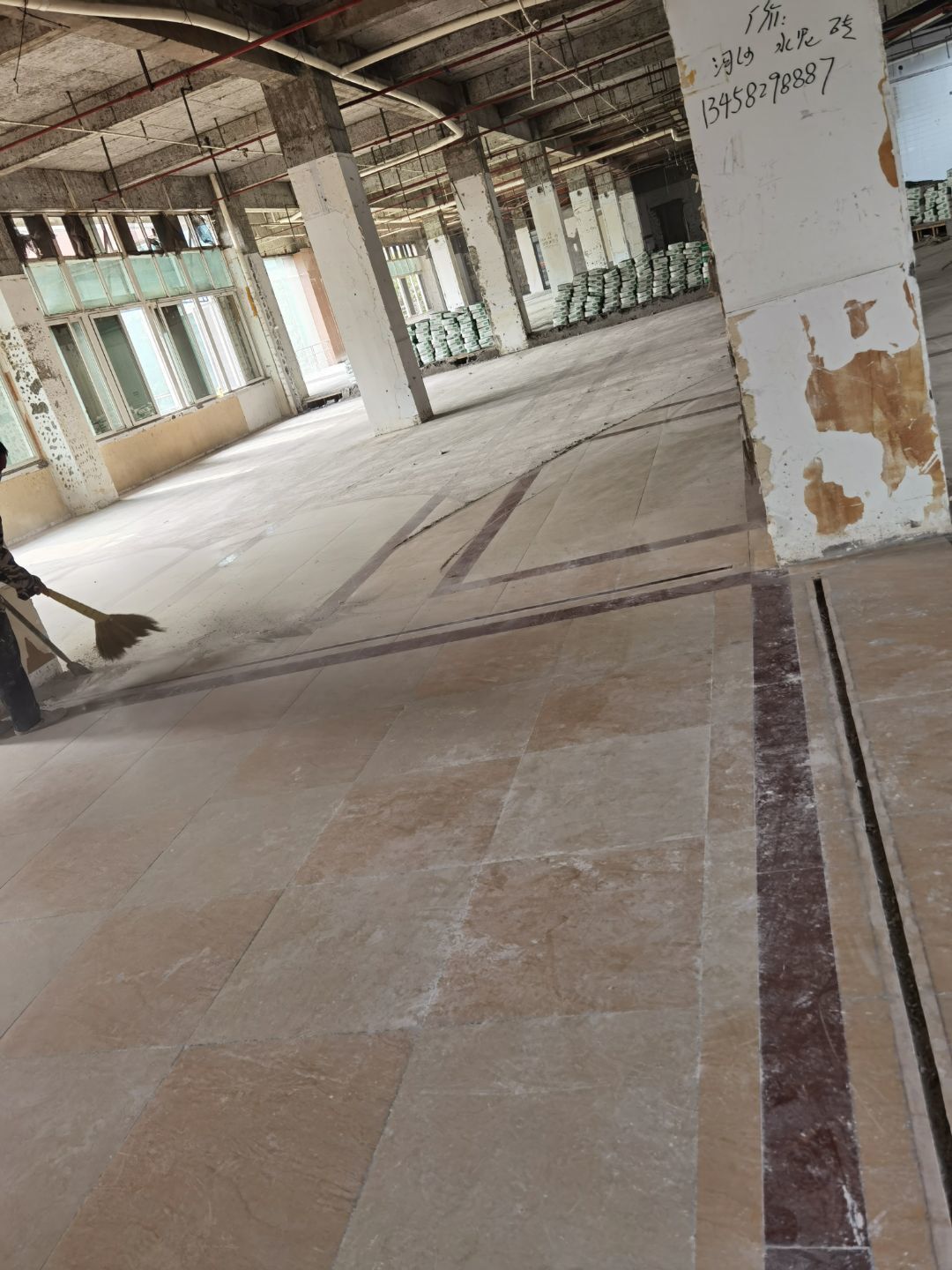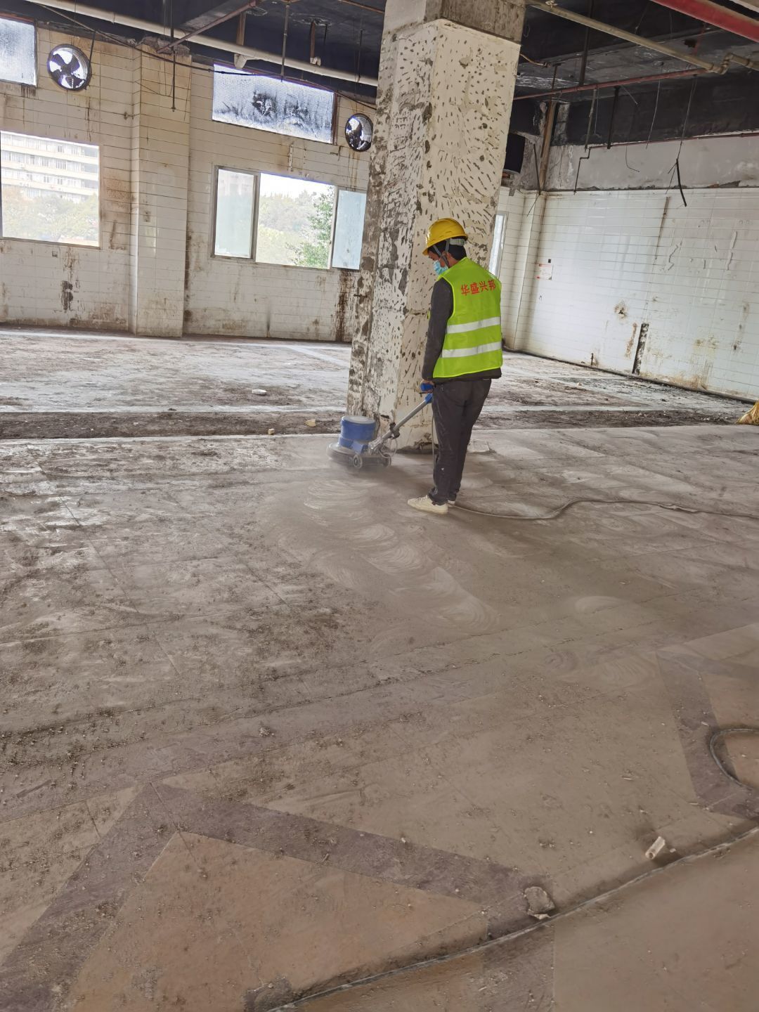 1、自流平材料到場; 2、地坪人員到場; 3、地面開始打磨、清掃